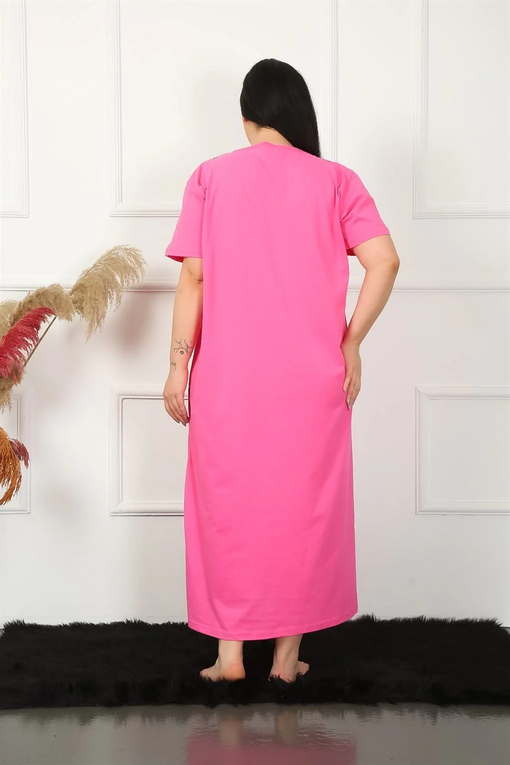 Büyük Beden Dantelli Kısa Kol Fuşya Anne Geceliği ile gecelerinizde şıklığı ve rahatlığı bir arada yaşayacaksınız. Çamaşır Kenti'nin özel tasarımı olan bu gecelik, büyük beden olan kullanıcılarımız için ideal bir seçenektir.