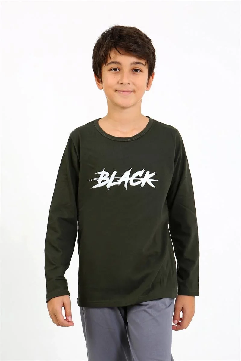 Erkek Çocuk Uzun Kol Penye Pijama Takımı Haki, kaliteli malzemesi ve şık tasarımıyla çocukları hem sıcacık tutar hem de rahat bir uyku deneyimi sunar.