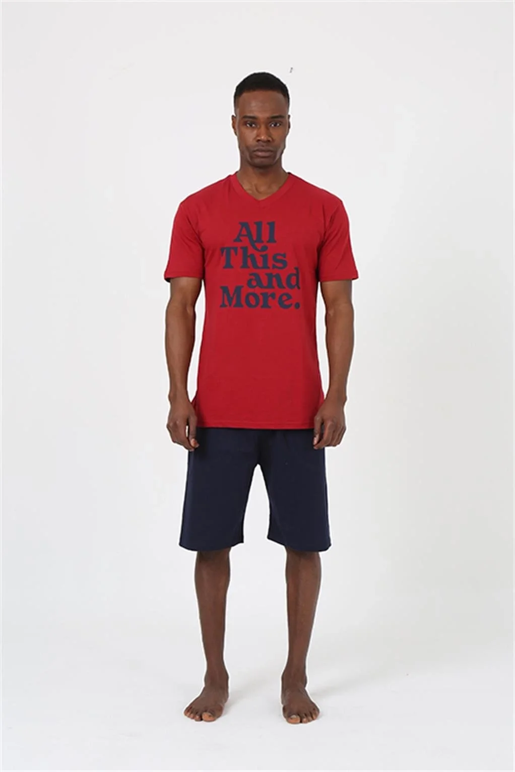 Çamaşır Kenti'nin erkekler için özel olarak tasarladığı kısa kol bordo penye şortlu pijama takımı, rahatlığı ve şıklığı bir arada sunuyor.