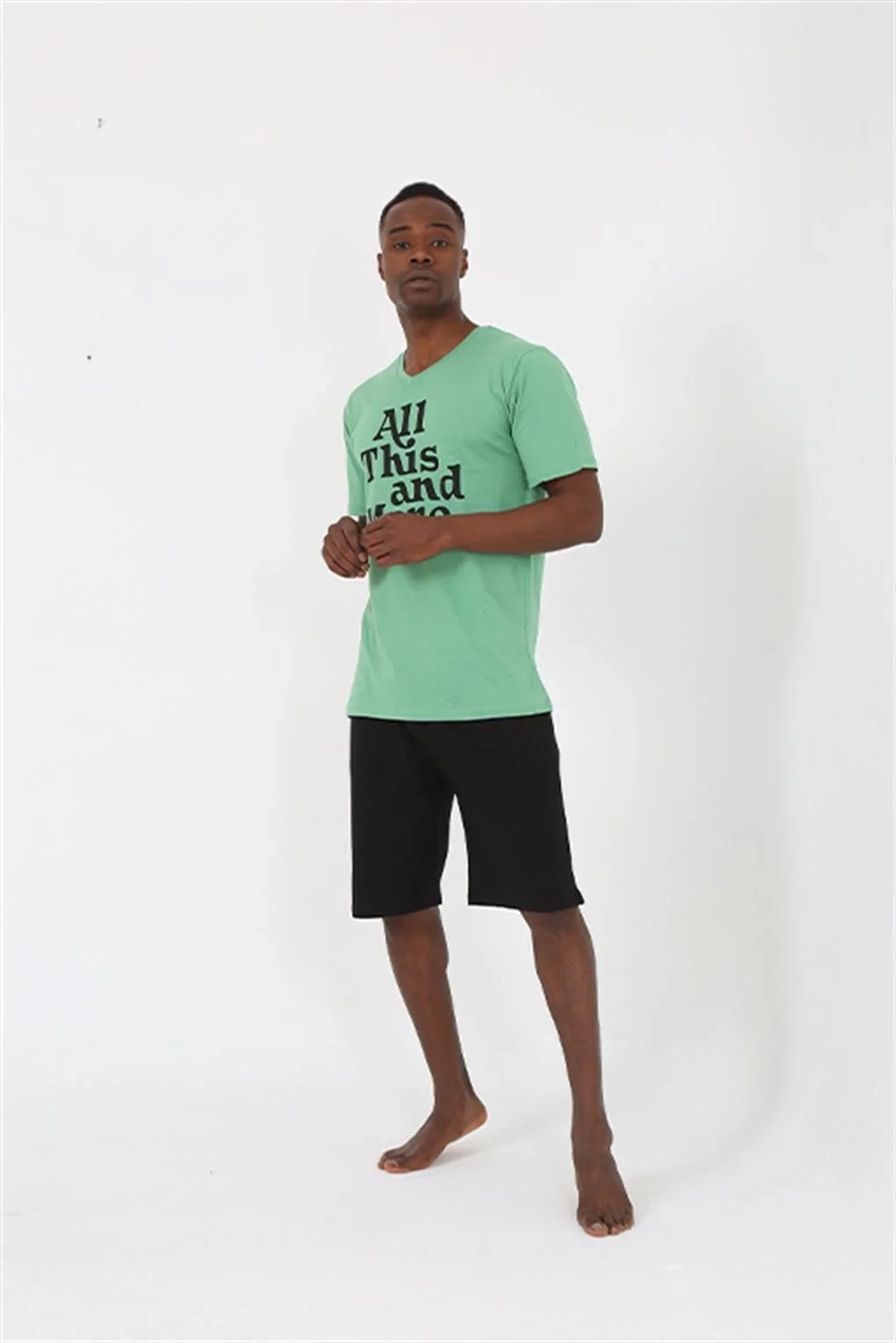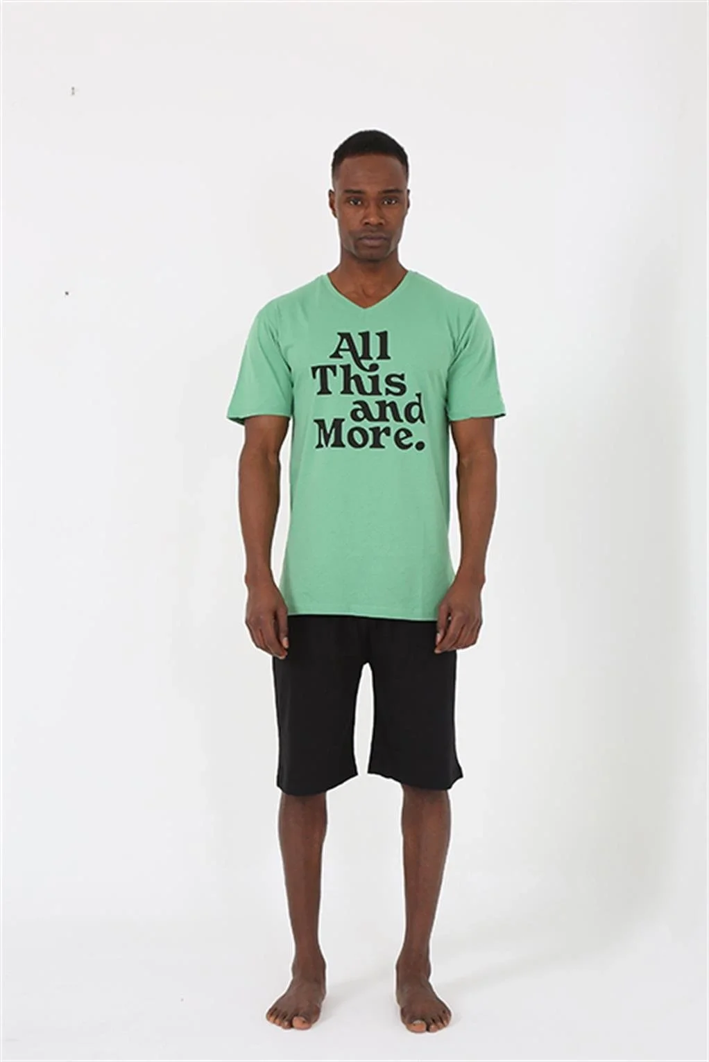Çamaşır Kenti erkek kısa kol Yeşil penye şortlu pijama takımı sayesinde gece giysilerinde şıklığı ve konforu bir arada yaşayabilirsiniz.