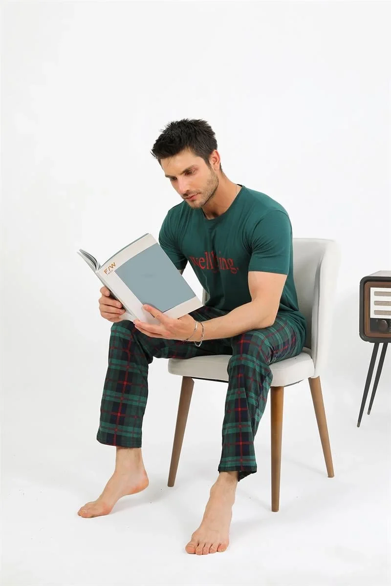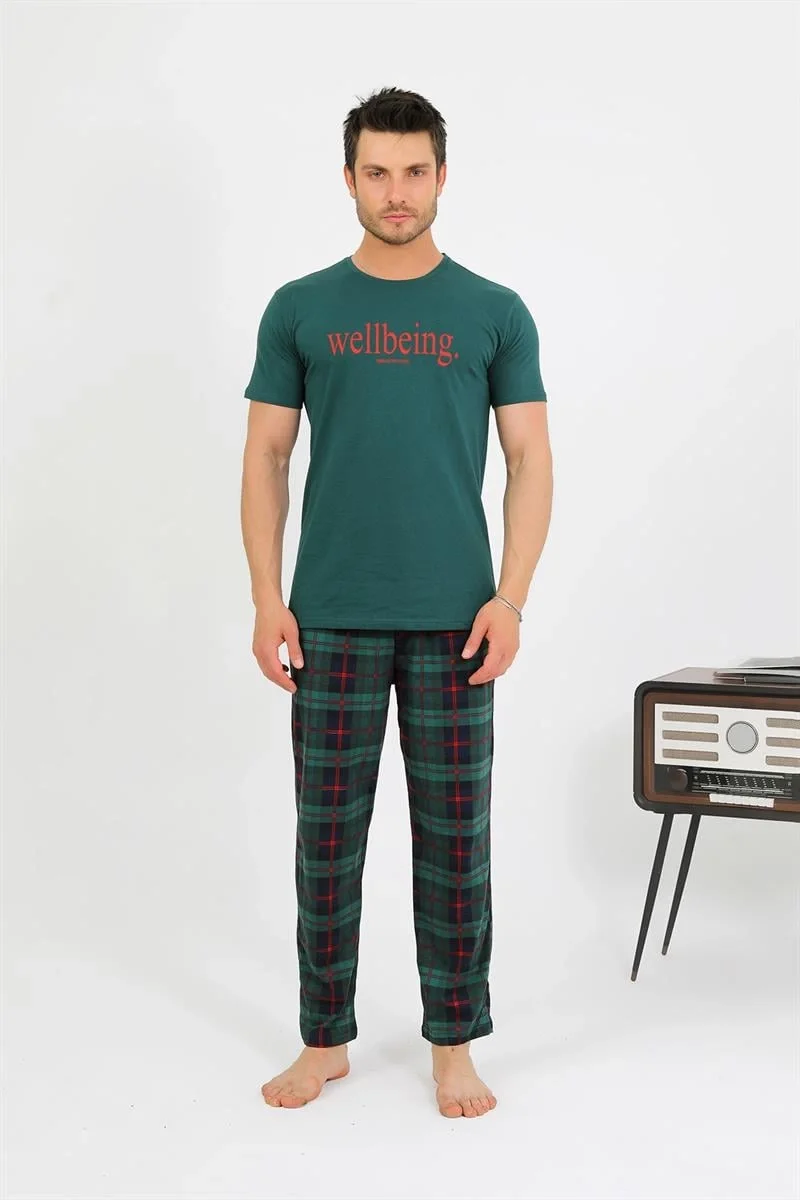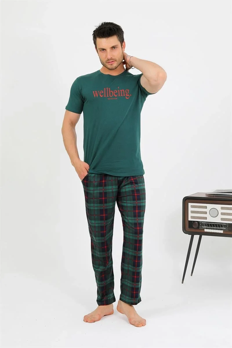 Çamaşır Kenti'nin şık ve konforlu erkek pamuk kısa kol pijama takımı Zümrüt , rahat bir gece uykusu için ideal seçimdir.
