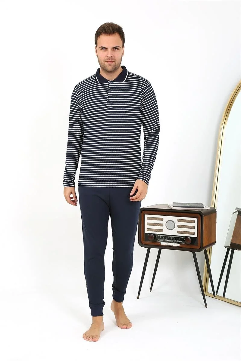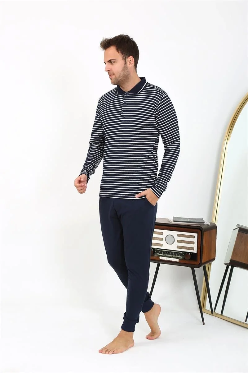 Çamaşır Kenti'nin şıklığı ve rahatlığı bir araya getirdiği Erkek Polo Yaka Uzun Kol Penye Pijama Takımı Lacivert, konfor arayan erkeklerin vazgeçilmezi olmaya aday! İşte bu şık pijama takımının özellikleri:
