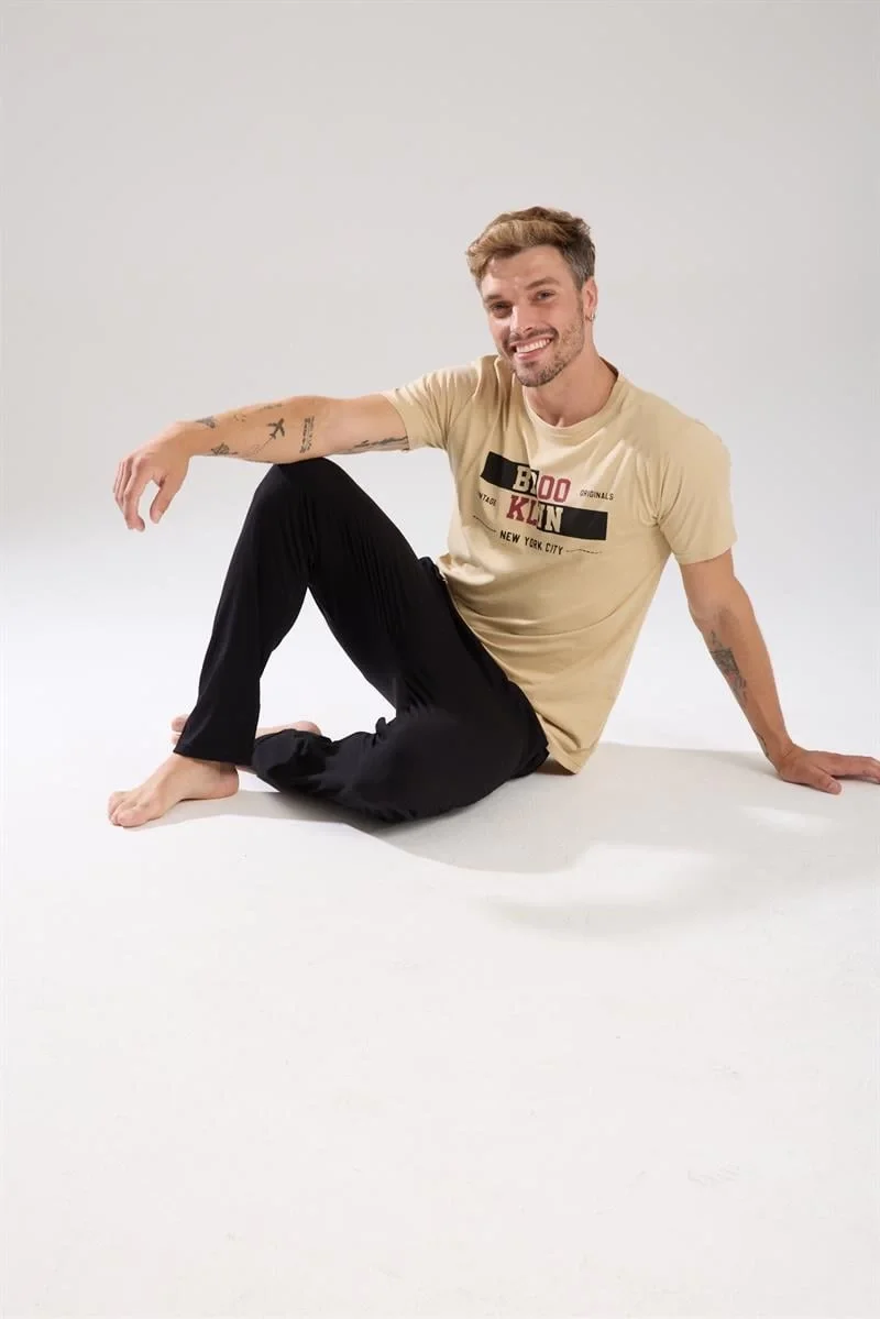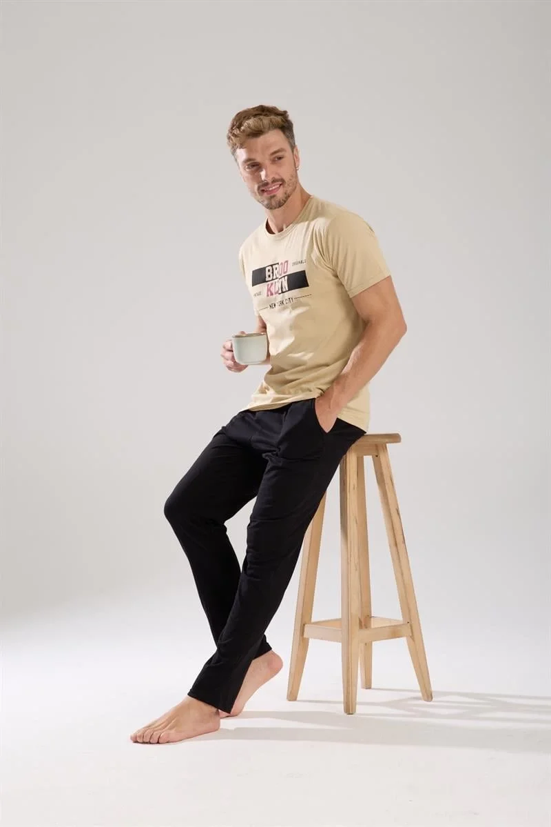 Çamaşır Kenti'nin erkek ten rengi kısa kol pijama takımıyla şıklığı ve rahatlığı bir arada yaşayın.