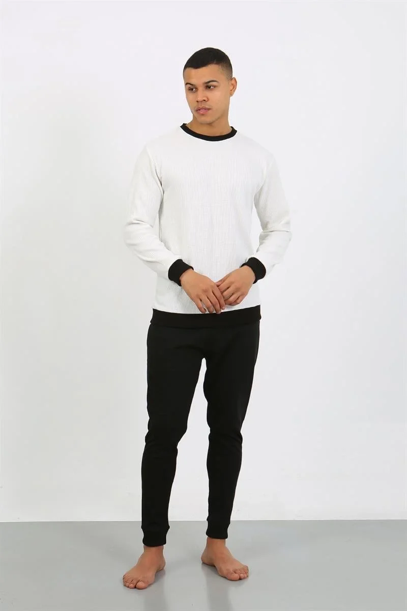Çamaşır Kenti markasının şıklığı ve rahatlığı bir araya getirdiği Erkek Uzun Kol Manşetli Paça Penye Pijama Takımı Beyaz, gecelerinize konfor katacak.