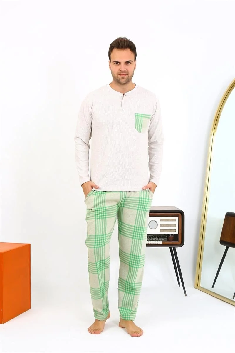 Uyku dünyasında konfor arayan erkeklerin tercihi olan Çamaşır Kenti Uzun Kol Penye Krem Pijama Takımını hemen keşfedin!