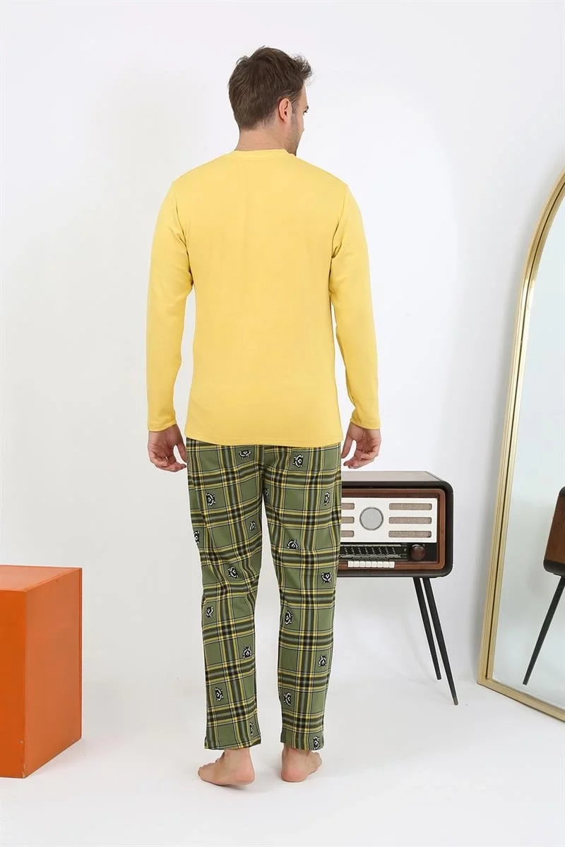 Uyku dünyasında konfor arayan erkeklerin tercihi olan Çamaşır Kenti Uzun Kol Penye Sarı Pijama Takımını hemen keşfedin!