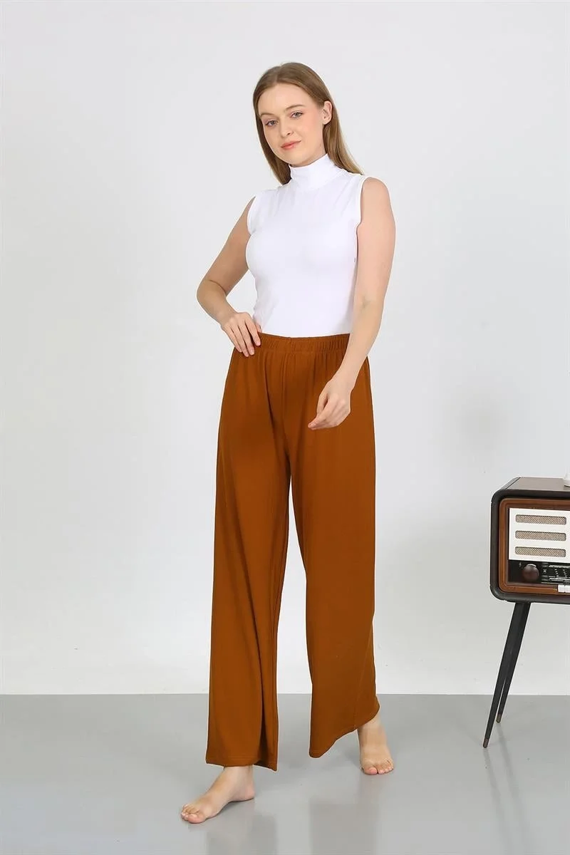 Bayan Penye Bol Paça Pantolon Sütlü Kahve