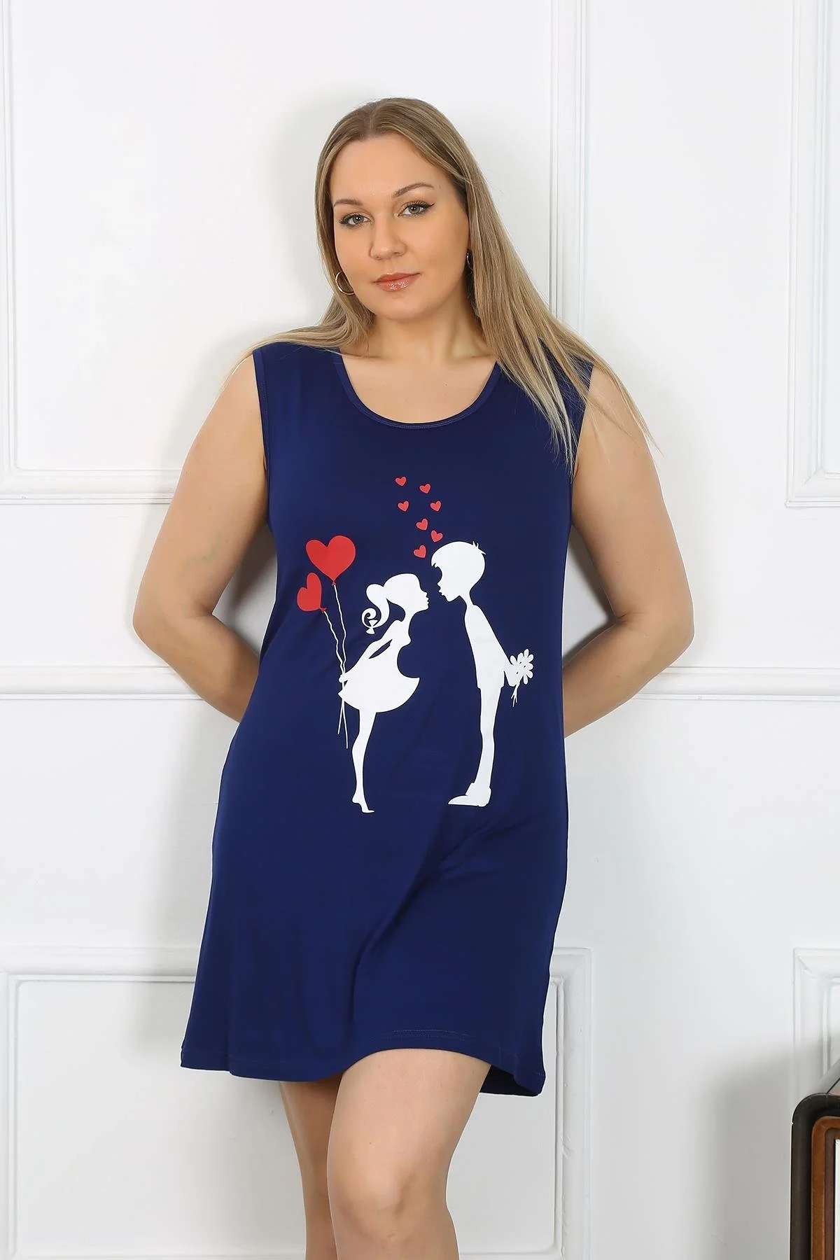 Kadın Büyük Beden Kalın Askılı Penye Diz Üstü Lacivert Gecelik, Çamaşır Kenti kalitesiyle şıklığı ve rahatlığı bir arada sunuyor.