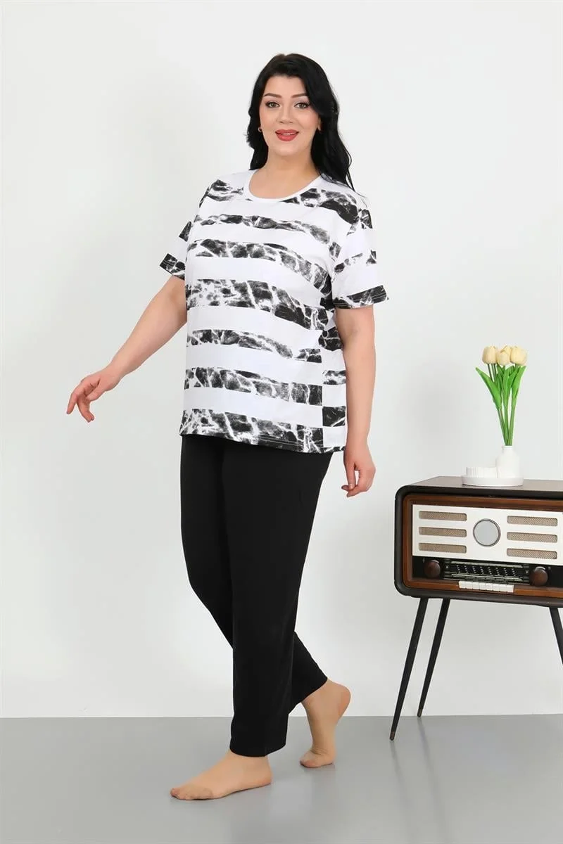 Çamaşır Kenti Kadın Büyük Beden Kısa Kol Penye Pijama Takımı Beyaz, tarzınızdan ödün vermeden konforlu bir gece geçirmenizi sağlar.