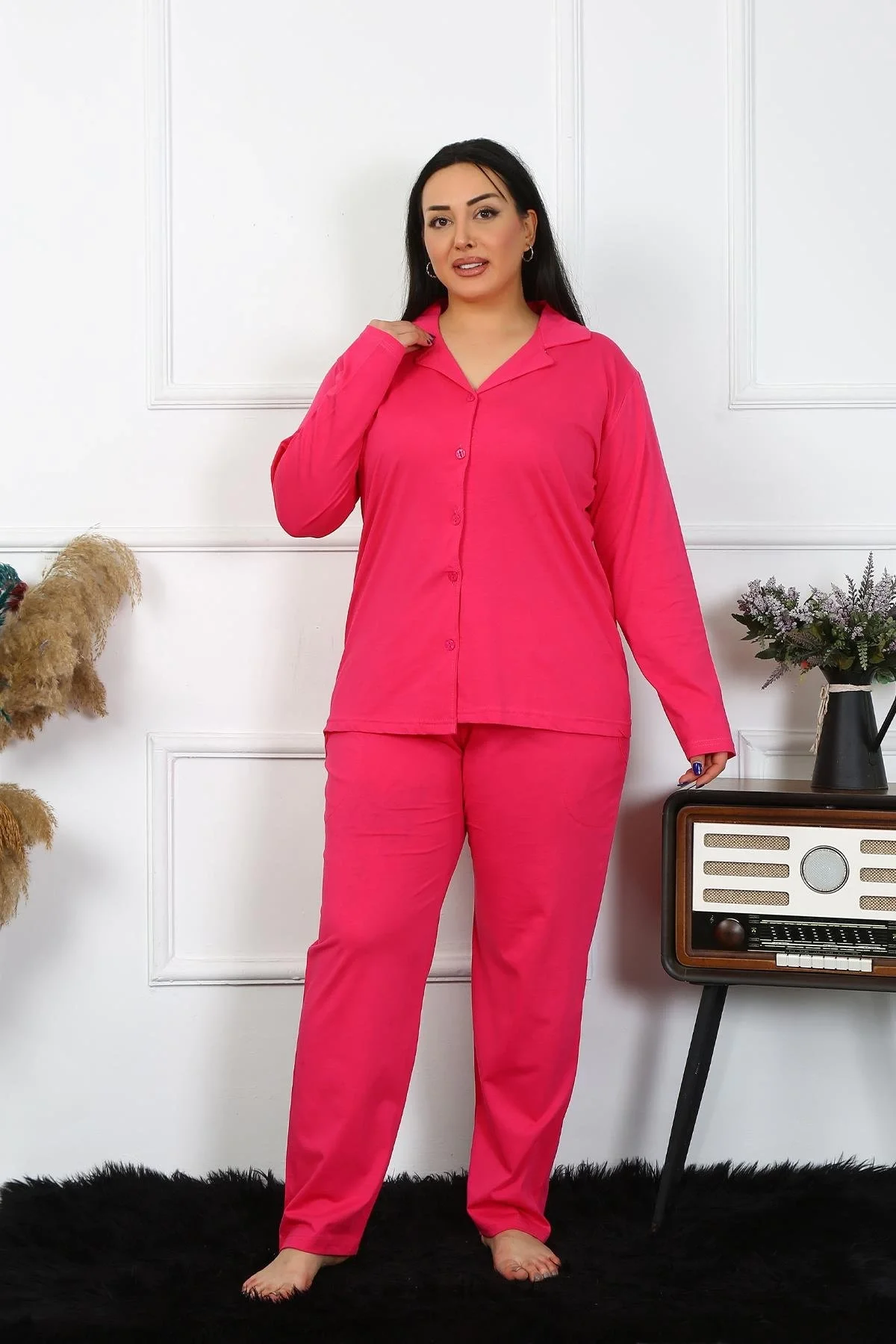 Çamaşır Kenti markası tarafından özenle tasarlanan Kadın Büyük Beden Pamuklu Cepli Düğmeli FuşyaPijama Takımı, şıklığı ve rahatlığı bir arada sunar.