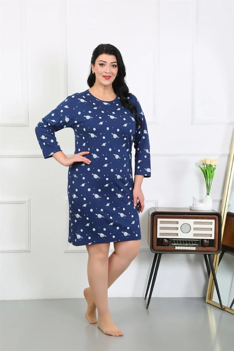 Çamaşır Kenti markasının şık ve konforlu Kadın Büyük Beden Penye Gecelik Ev Elbisesi Lacivert, rahatlığı ve şıklığı bir arada sunuyor.