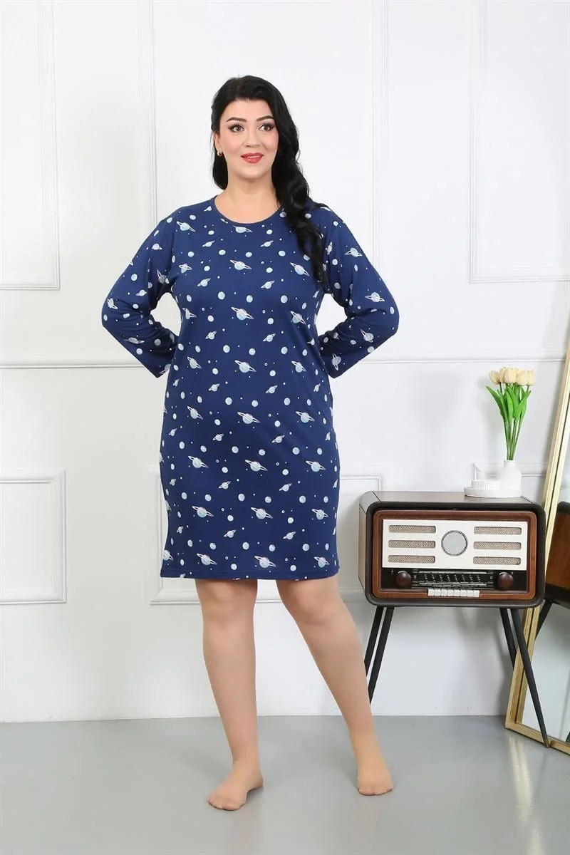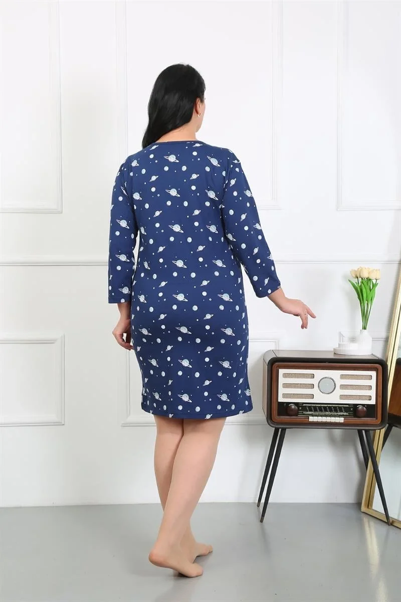 Çamaşır Kenti Kadın Büyük Beden Penye Gecelik Ev Elbisesi Lacivert ile evde hem şık hem de rahat olmanın keyfini çıkarın!
