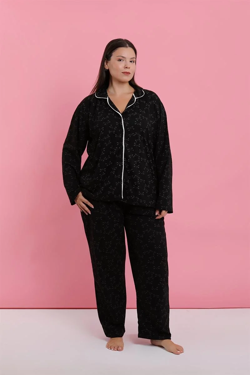 Çamaşır Kenti markasının tasarladığı Kadın Büyük Beden Siyah Kırmızı Çiçekli Düğmeli Pijama Takımı, konfor ve şıklığı bir arada sunuyor.