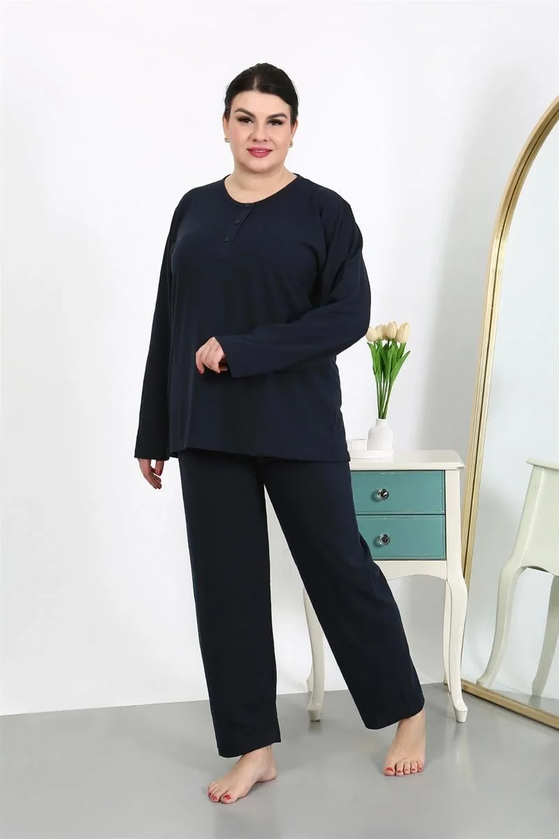 Kadın Büyük Beden Uzun Kol Penye Pijama Takımı Lacivert