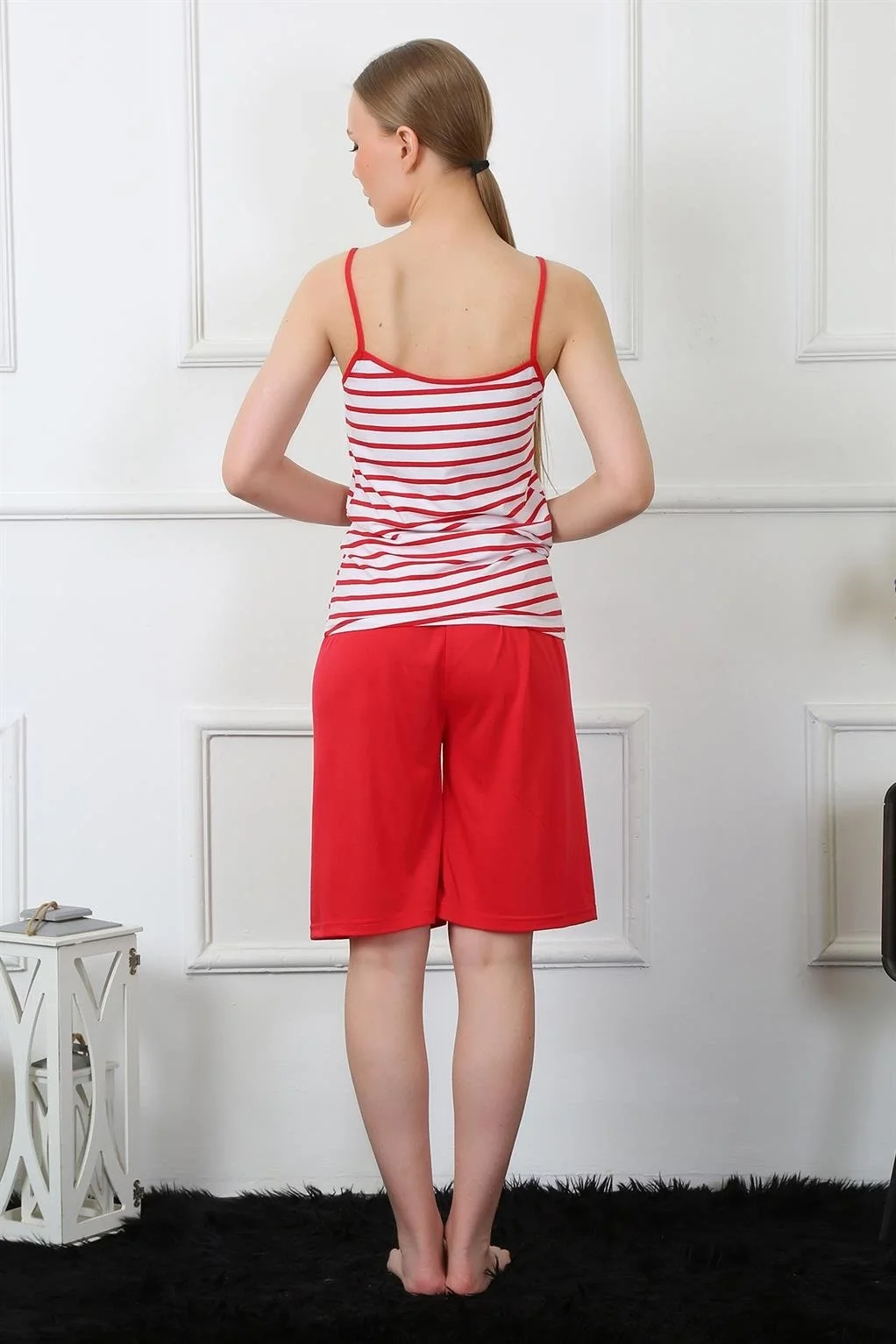 Çamaşır Kenti'nin şıklık ve rahatlık sunan Kadın İp Askılı Kapri Takımı ile tarzınızı ortaya koyun.