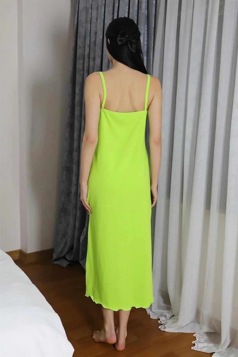 Çamaşır Kenti'nin tasarladığı Kadın İp Askılı Uzun Yırtmaçlı Pamuk Penye Gecelik Kahve, şıklığı ve rahatlığı bir arada sunuyor.