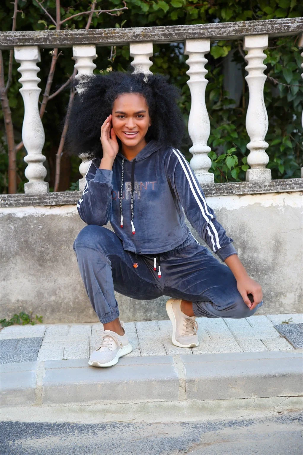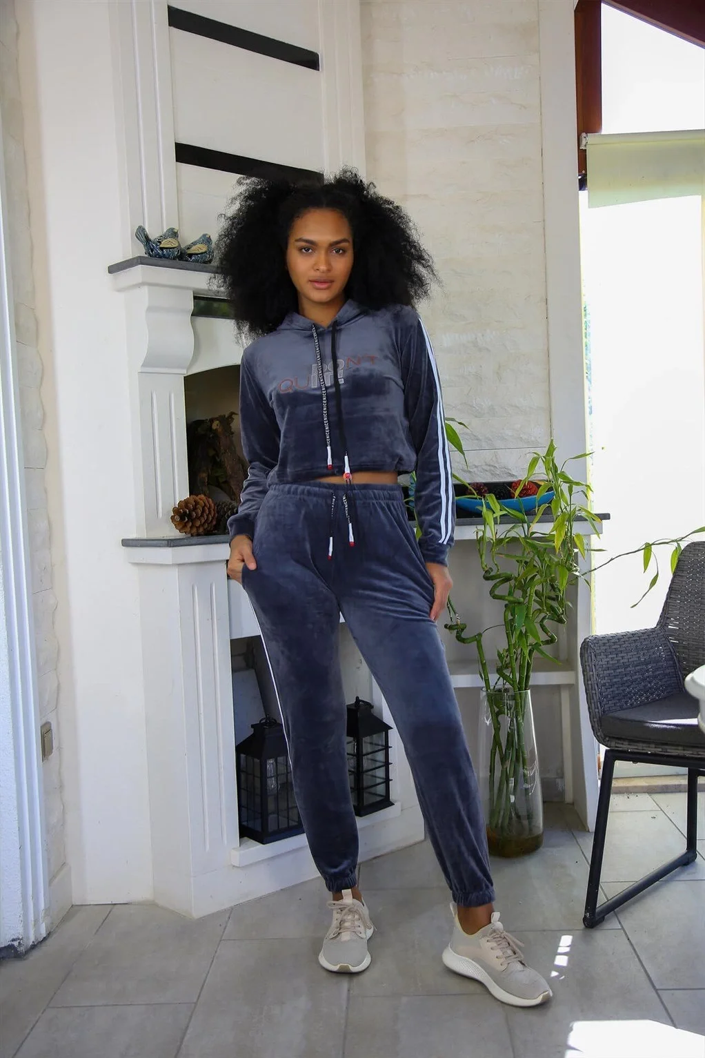 Kadın Kadife Kapşonlu Eşofman Takım