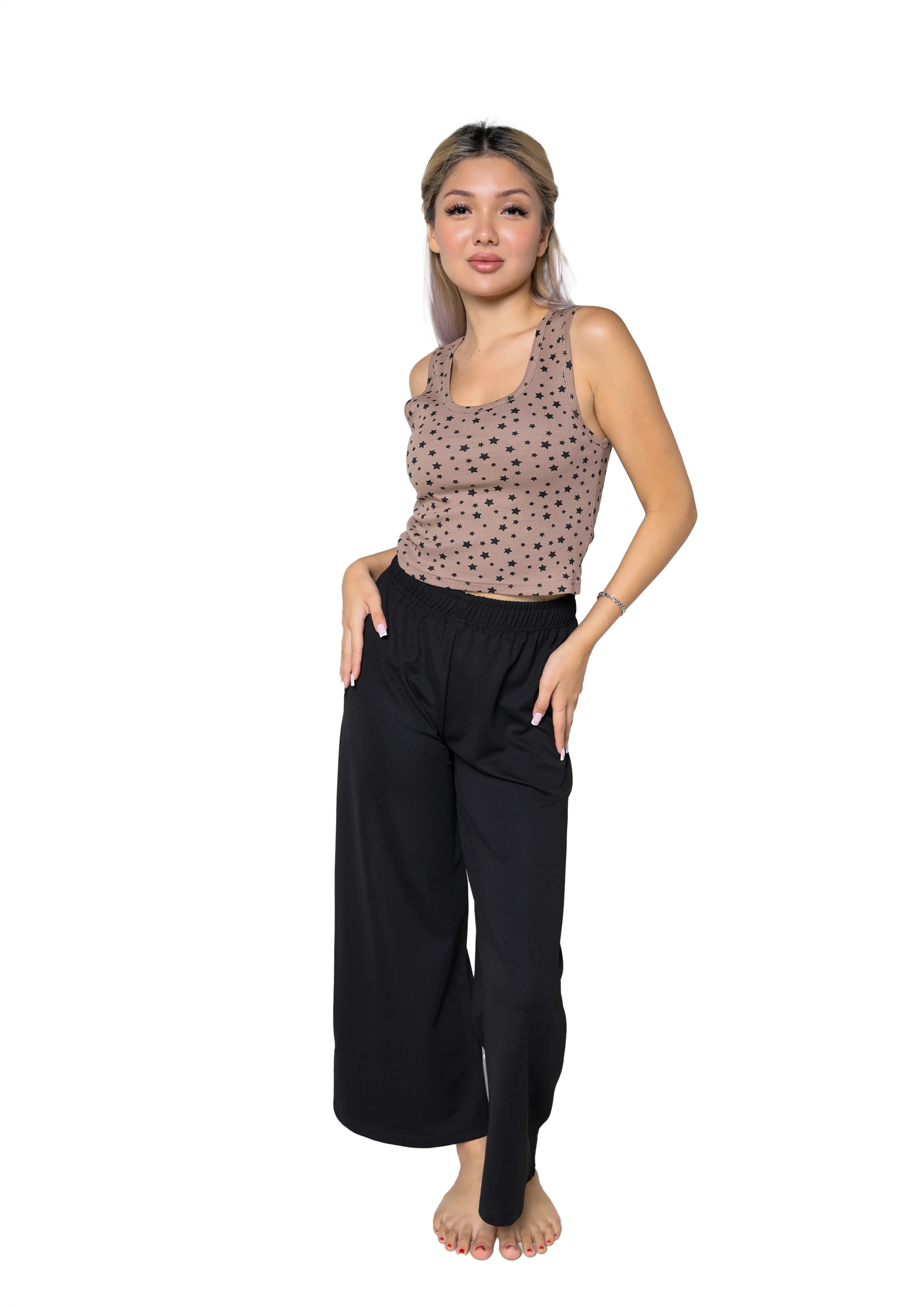 Bu şık ve rahat takım ile tarzınızı konuşturun! Çamaşır Kenti'nin sunduğu Kadın Kalın Askılı Body Bol Paça Pantolon 2'li Takım Kahverengi, hem şıklığı hem de konforu bir arada sunuyor. İster günlük hayatta isterseniz özel bir davette tercih edebileceğiniz bu takım, gardırobunuzun vazgeçilmezi olmaya aday!