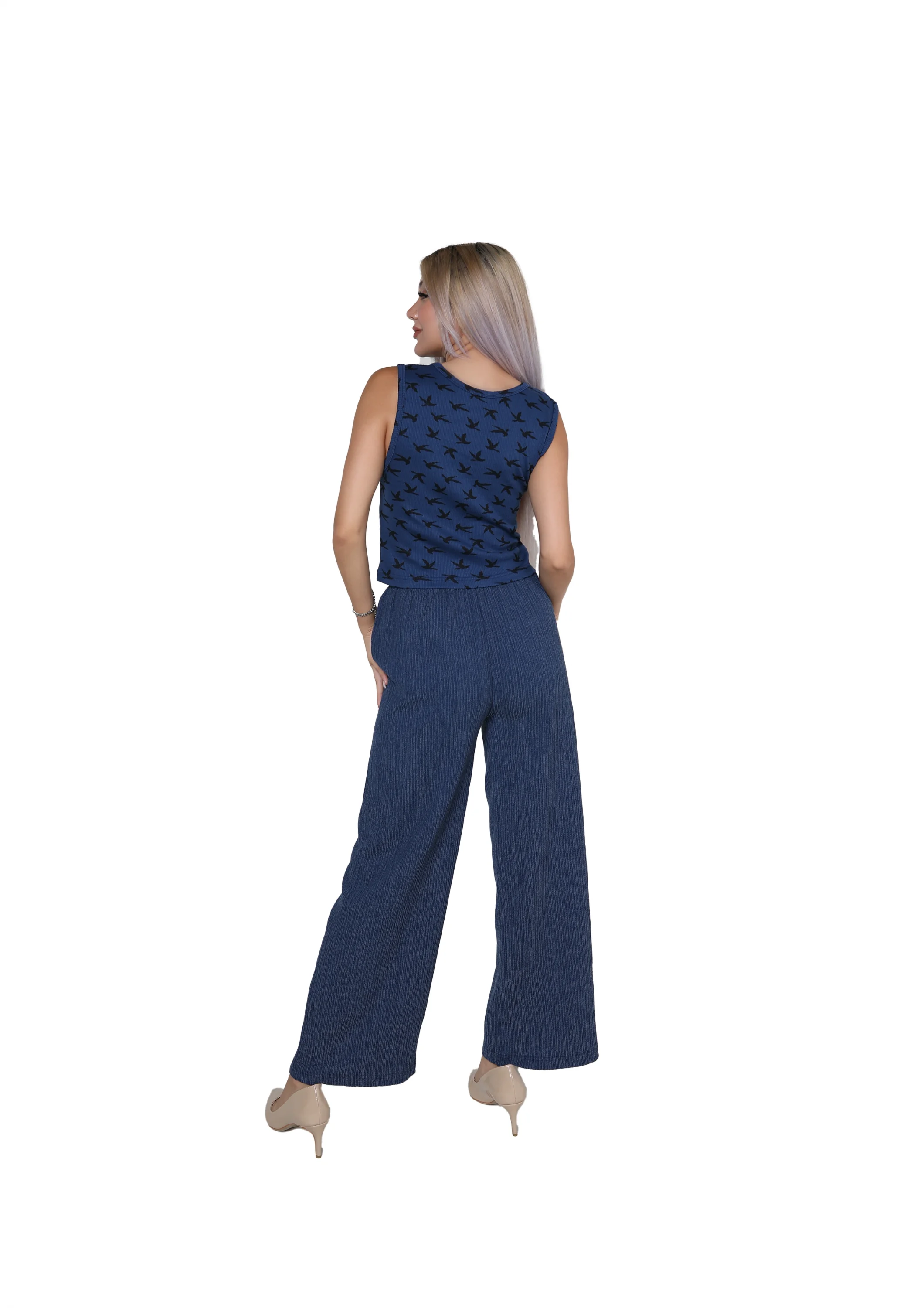 Bu harika takım ile her ortamda dikkatleri üzerinize çekmeye hazır olun. Çamaşır Kenti kalitesi ve şıklığı ile Kadın Kalın Askılı Body Bol Paça Pantolon 2'li Takım Lacivert, şimdi sizi bekliyor!