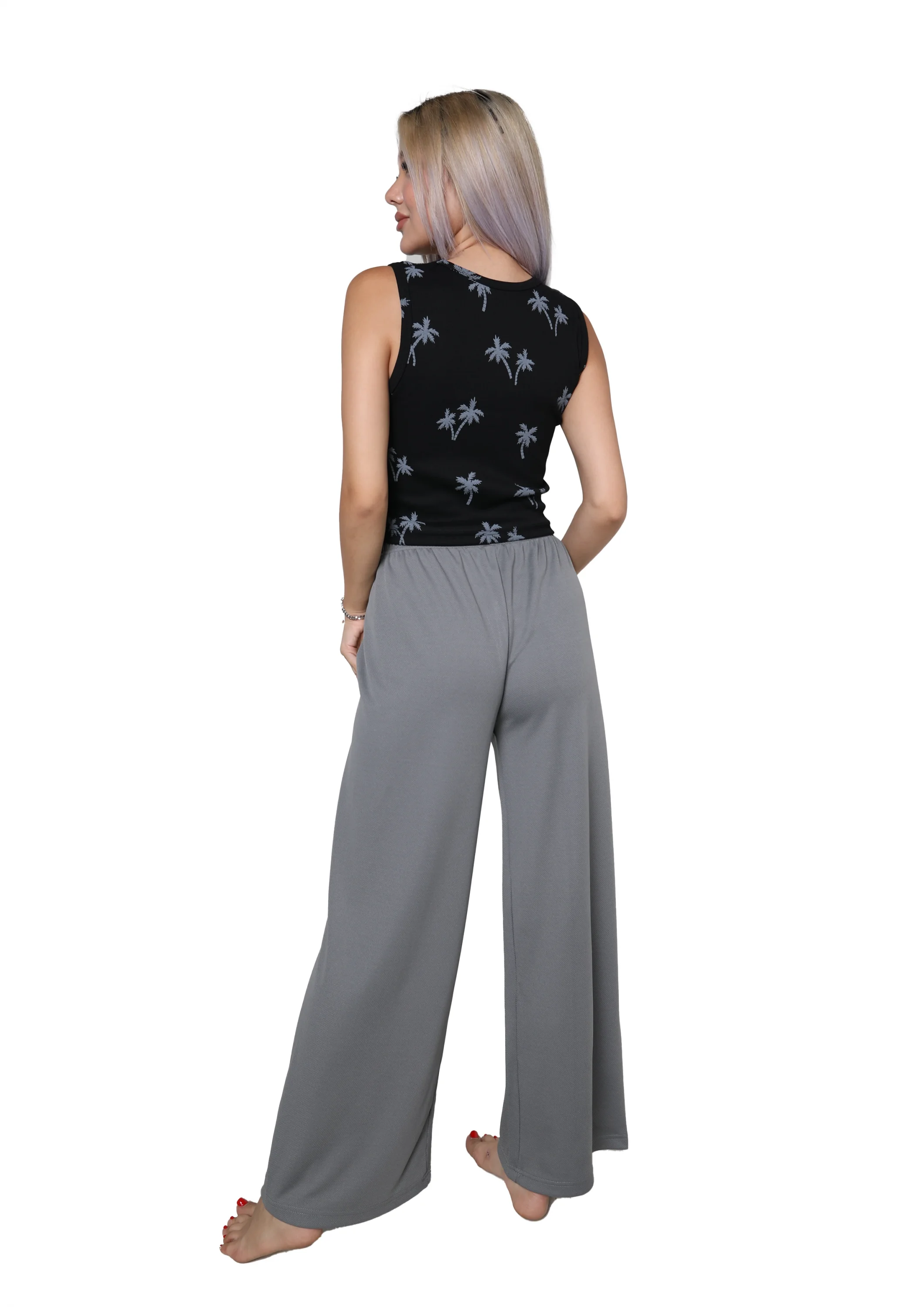 Bu harika takım ile her ortamda dikkatleri üzerinize çekmeye hazır olun. Çamaşır Kenti kalitesi ve şıklığı ile Kadın Kalın Askılı Body Bol Paça Pantolon 2'li Takım Siyah, şimdi sizi bekliyor!