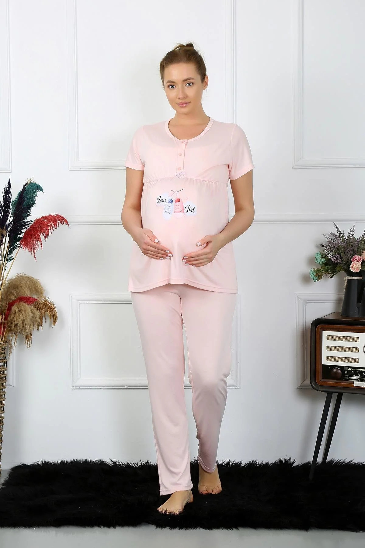 Kadın %100 Pamuklu Hamile Pijama Takımı