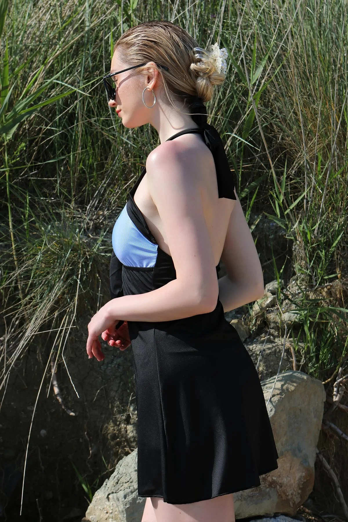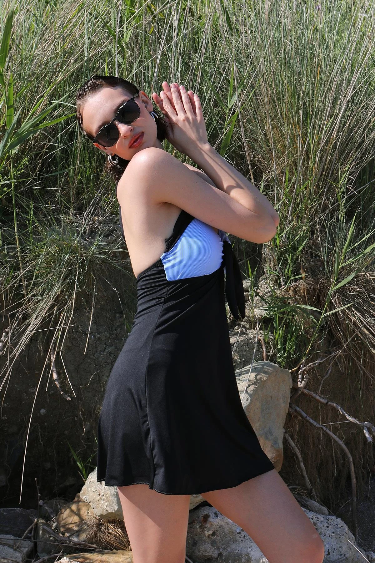 Klasik mavi rengiyle plajın ferah atmosferine uyum sağlayan göz alıcı bir seçenek.