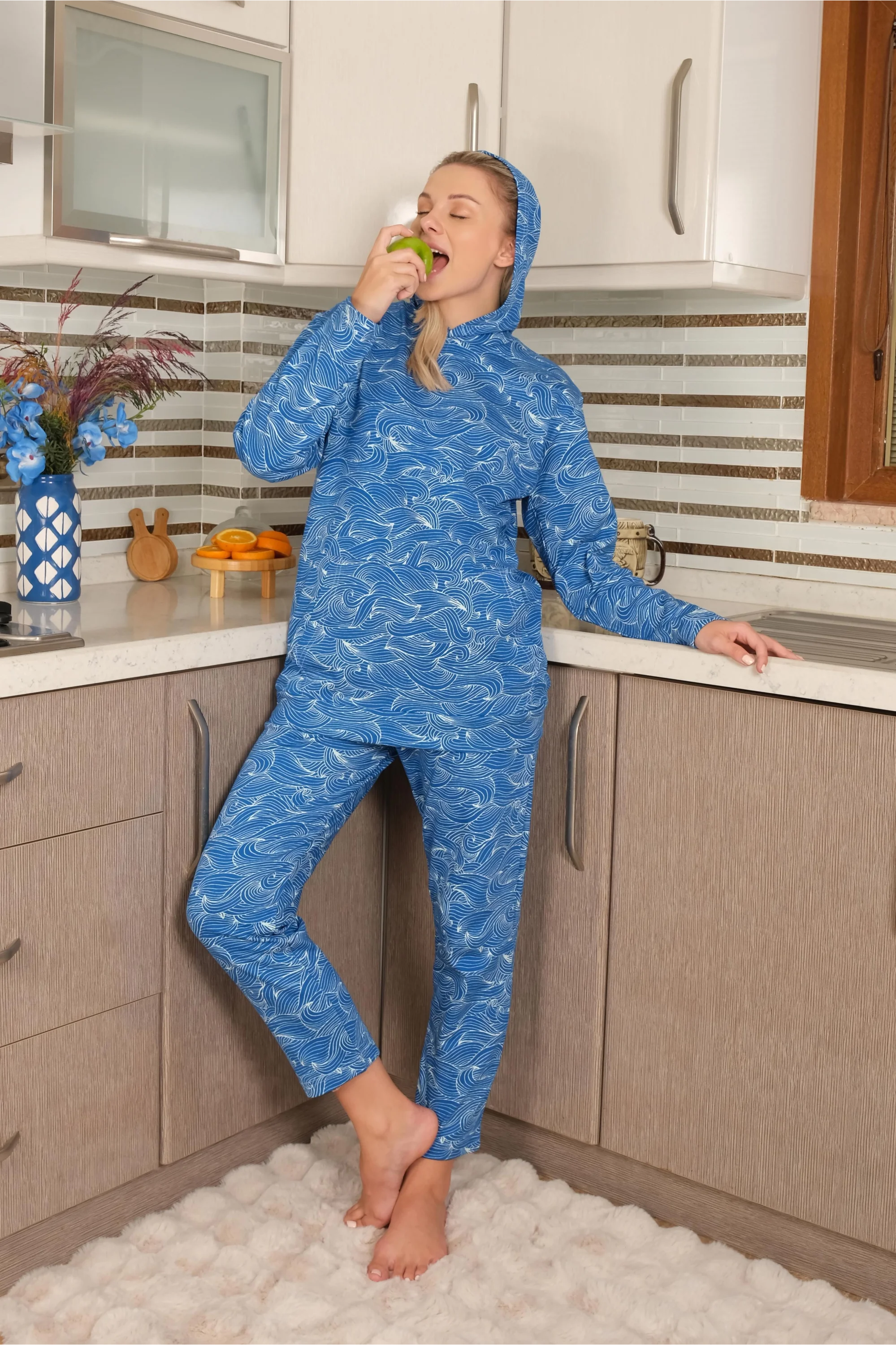 Kadın Pamuk Kapşonlu Cepli 3 İplik Eşofman Takım