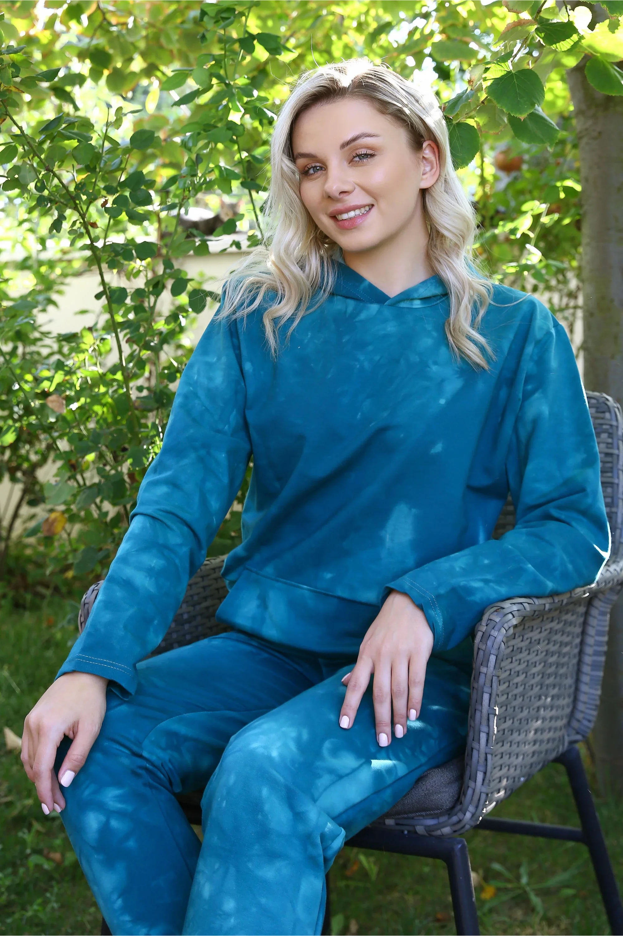 Çamaşır Kenti Kadın Pamuk Kapşonlu Cepli 3 İplik Turkuaz Eşofman Takımı, spor salonundan günlük hayata kadar her ortamda şıklığınızı ve rahatlığınızı korumanızı sağlar.