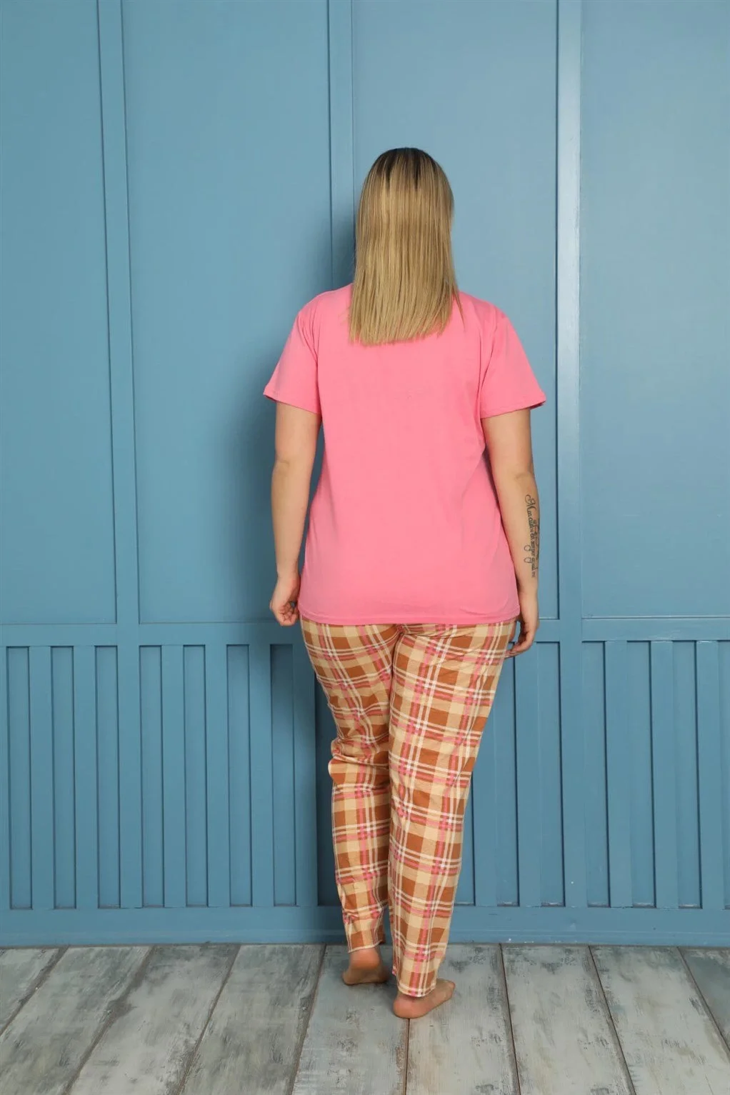 Kadın %100 Pamuk Cepli Kısa Kol Büyük Beden Pijama Takım