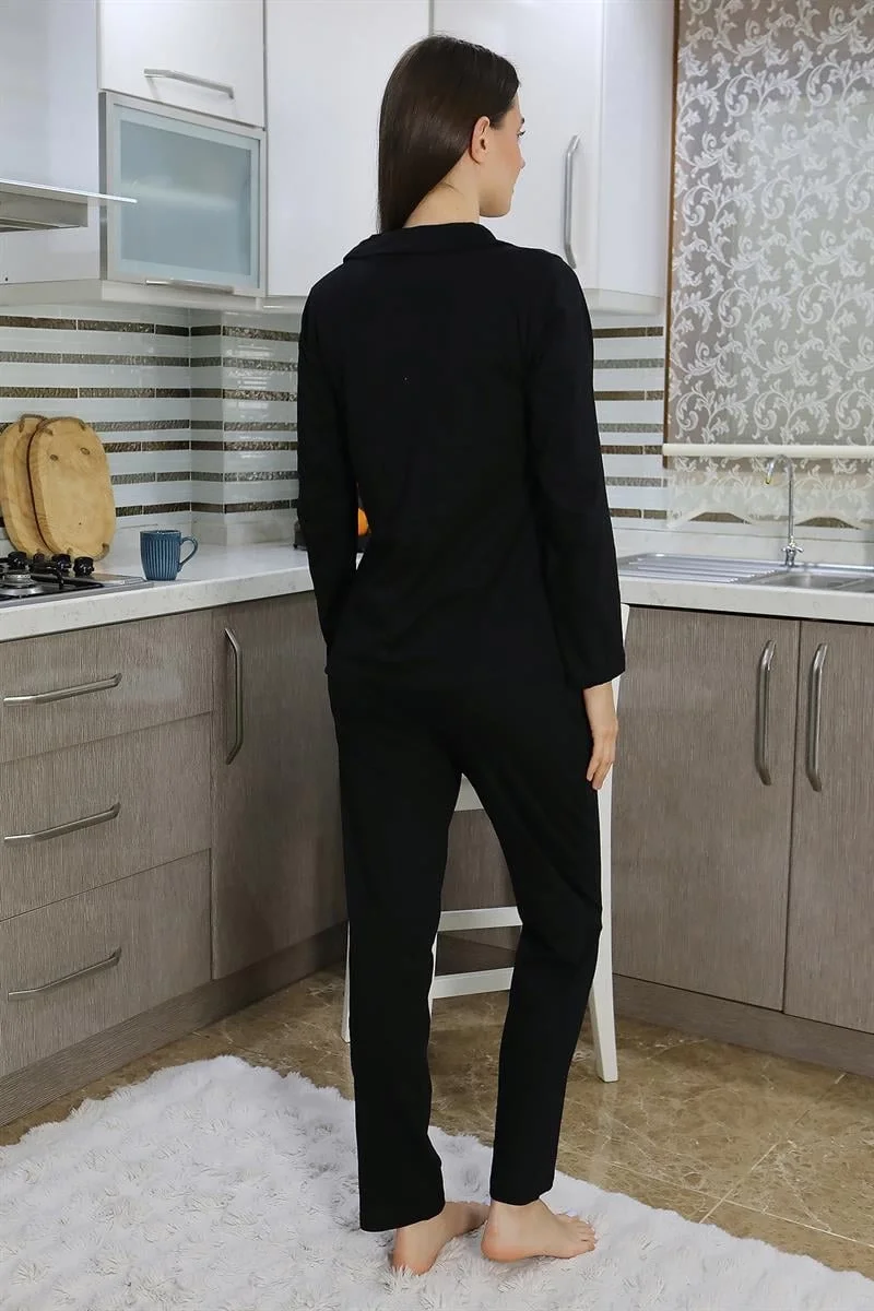 Çamaşır Kenti'nin şık tasarımıyla öne çıkan Kadın Pamuk Penye Önden Düğmeli Uzun Kol Pijama Takımı, rahatlığı ve şıklığı bir arada sunuyor.