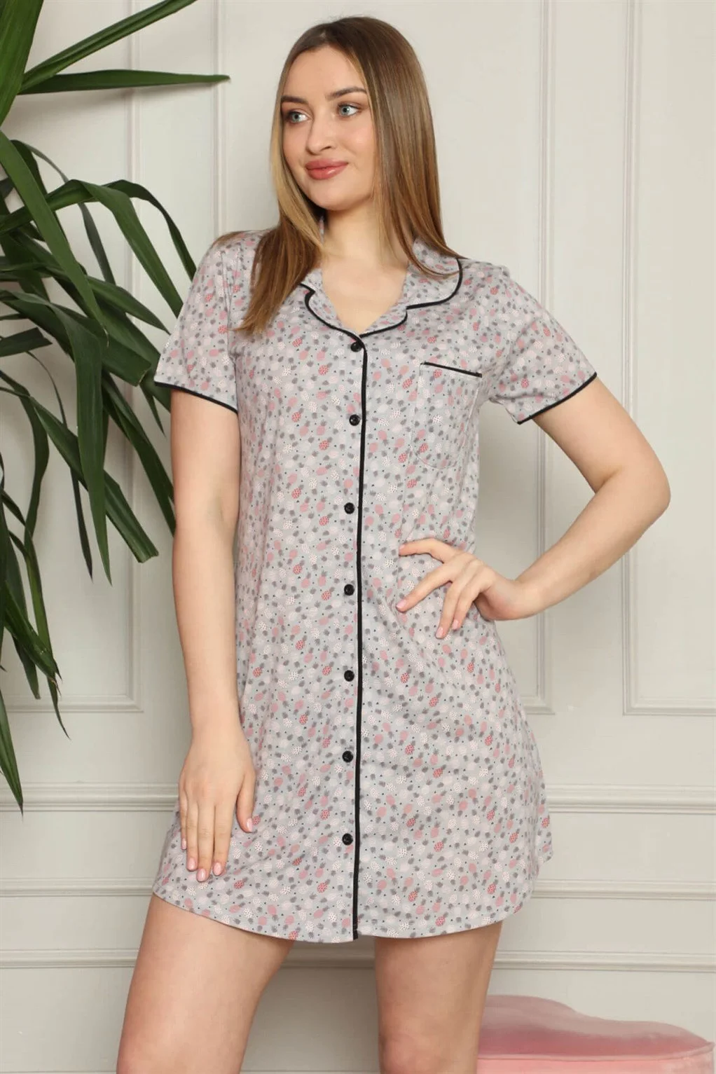 Kadın Pamuklu Önden Düğmeli Gecelik