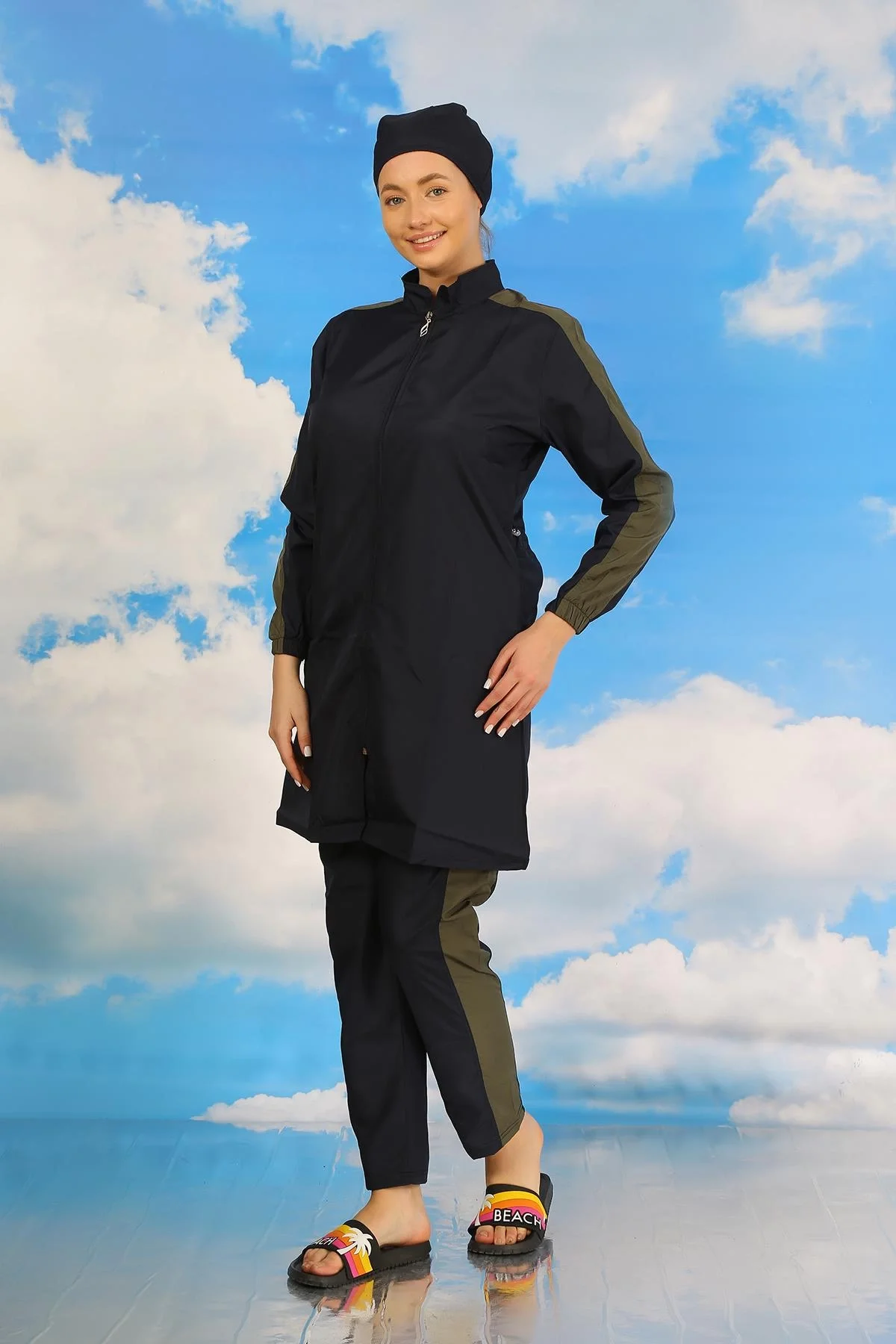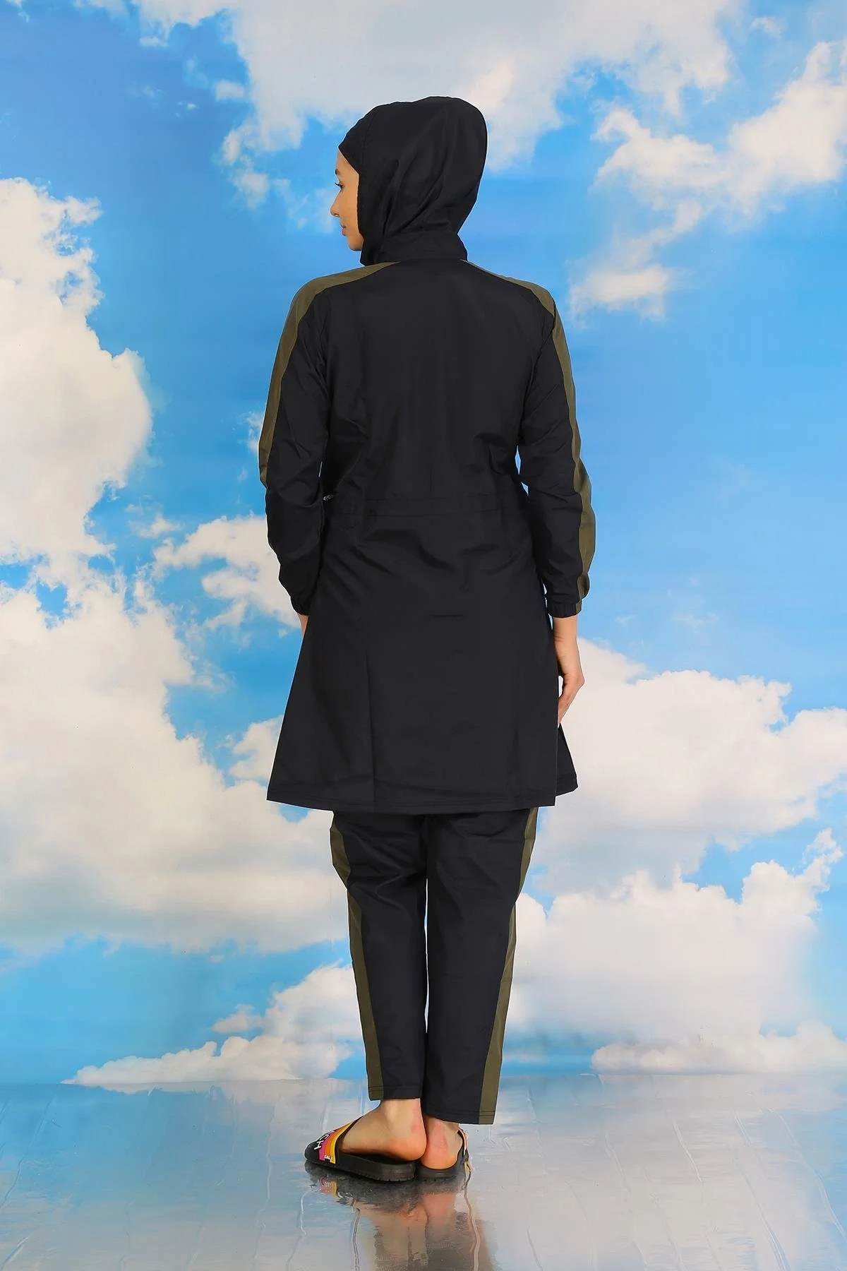 - Tam tesettür mayo tasarımıyla vücudu tamamen kaplar.