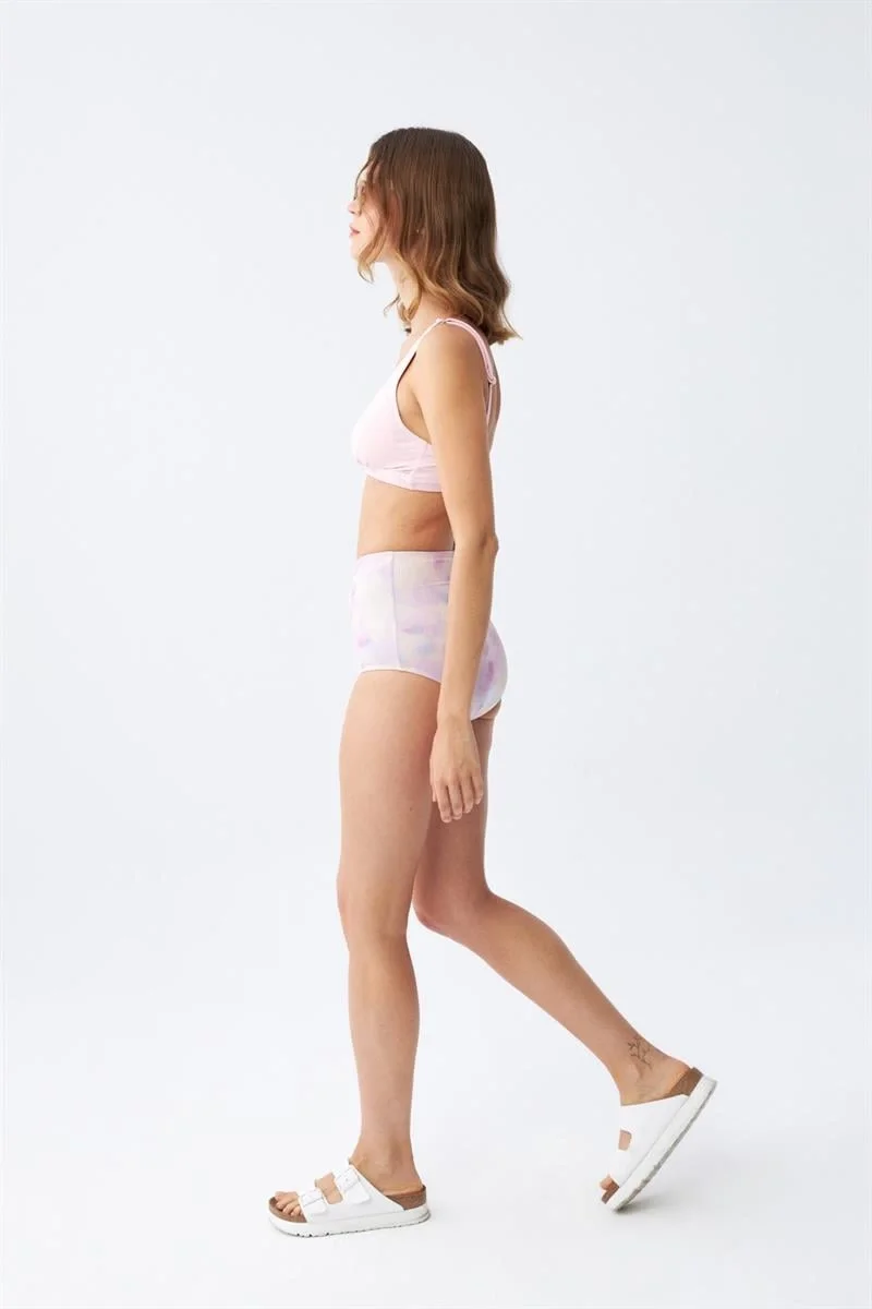 Kadın Pembe Pedli Üst ve Pastel Desenli Yüksek Bel Bikini Takımı ile plaj şıklığınızı tamamlayarak, güneşin keyfini çıkarabilirsiniz.