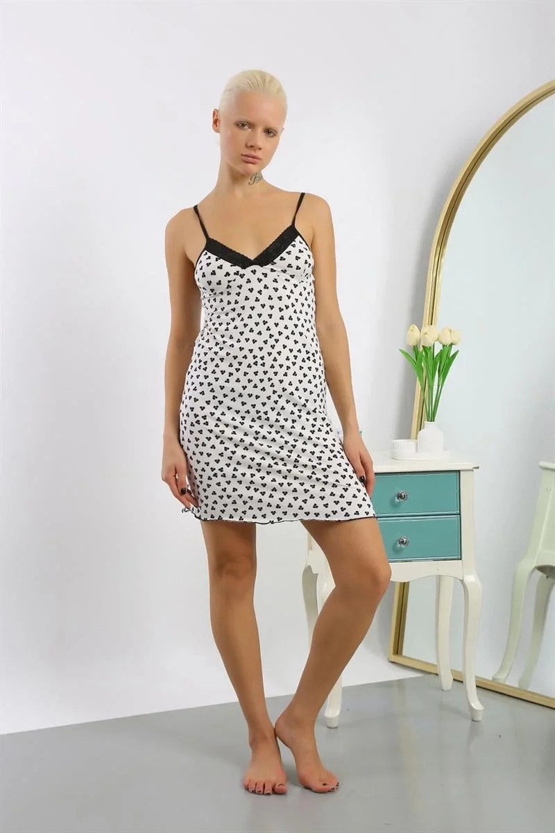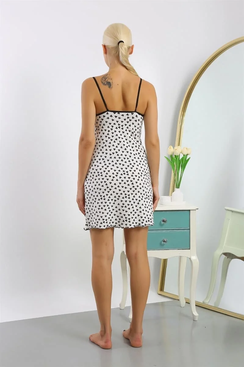 Çamaşır Kenti Kadın Penye Desenli İp Askılı Gecelik, konforu ve şıklığı bir arada sunar.