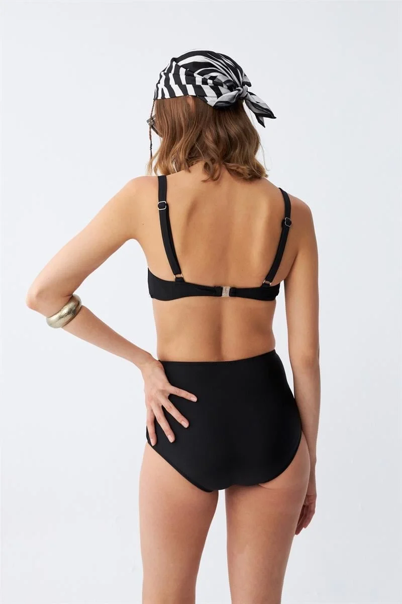 Çamaşır Kenti'nin özel tasarımı olan Kadın Siyah Pedli Kare Yaka Yüksek Bel Bikini Takımı, plajda şıklığı ve konforu bir arada sunar.
