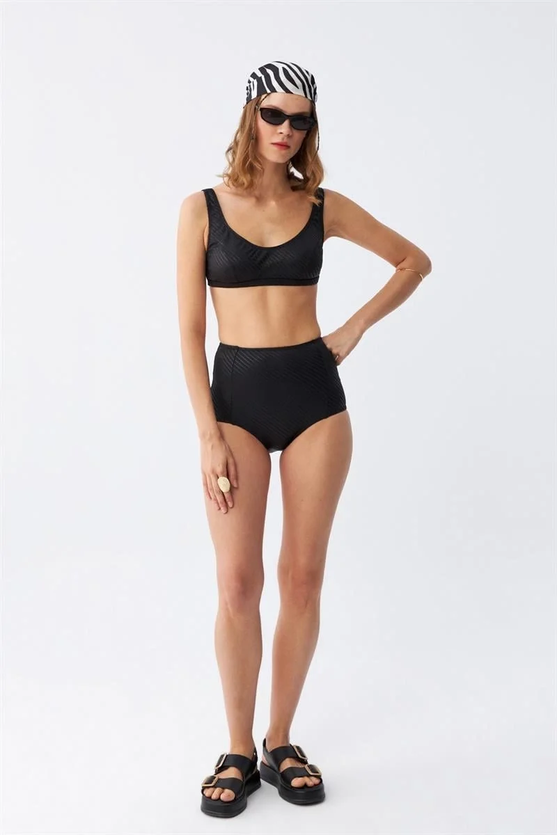 Kadın Siyah Pedli Kare Yaka Yüksek Bel Bikini Takımı