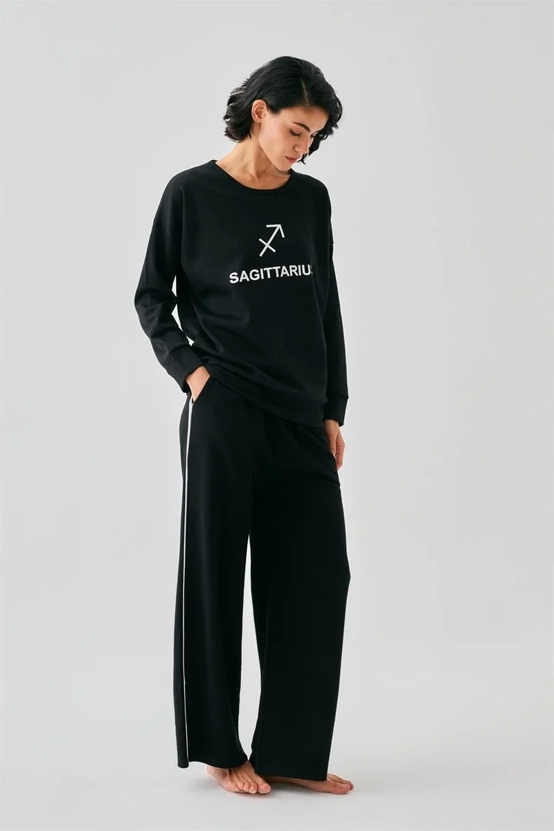 Yay burcunun enerjik, pozitif ve maceracı ruhunu yansıtan bu özel tasarım, özgür ruhunla uyum içinde hareket etmeni sağlar. ’in astroloji koleksiyonundan siyah oversize eşofman takımı, konforu ve stili tek parçada buluşturur.