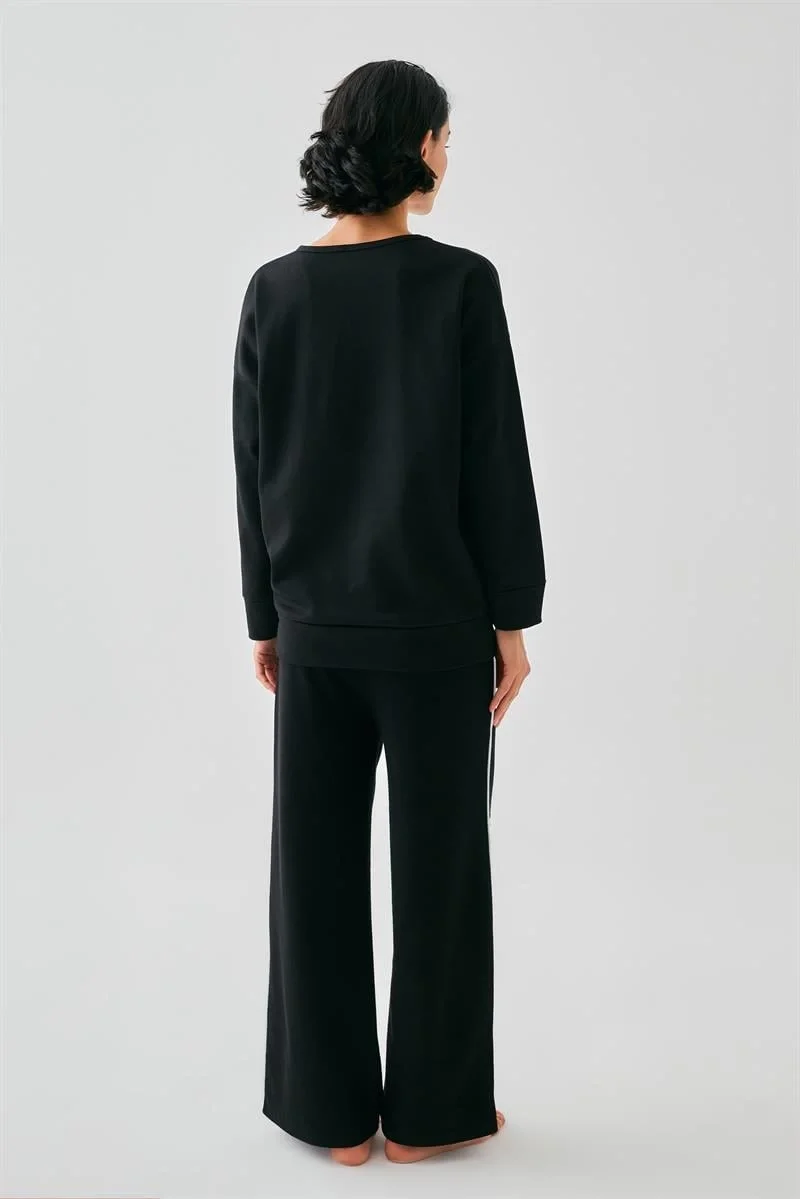 Kadın Siyah Yay Burcu Oversize 2 İplik Eşofman Ev Giyim Takımı