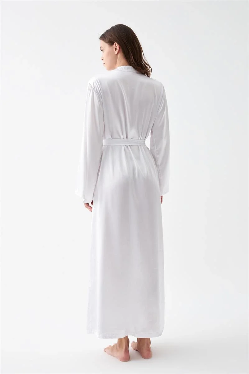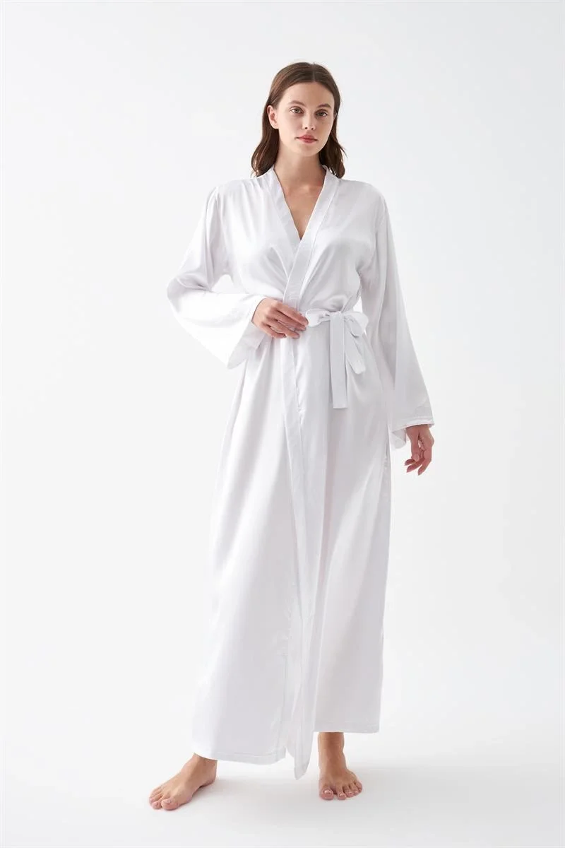 Kadın Uzun Beyaz Saten Sabahlık ile hem şıklığı yakalayacak hem de konforun keyfini çıkaracaksınız. Gecelerinize zarafet katacak bu ürünü hemen sepetinize ekleyin!