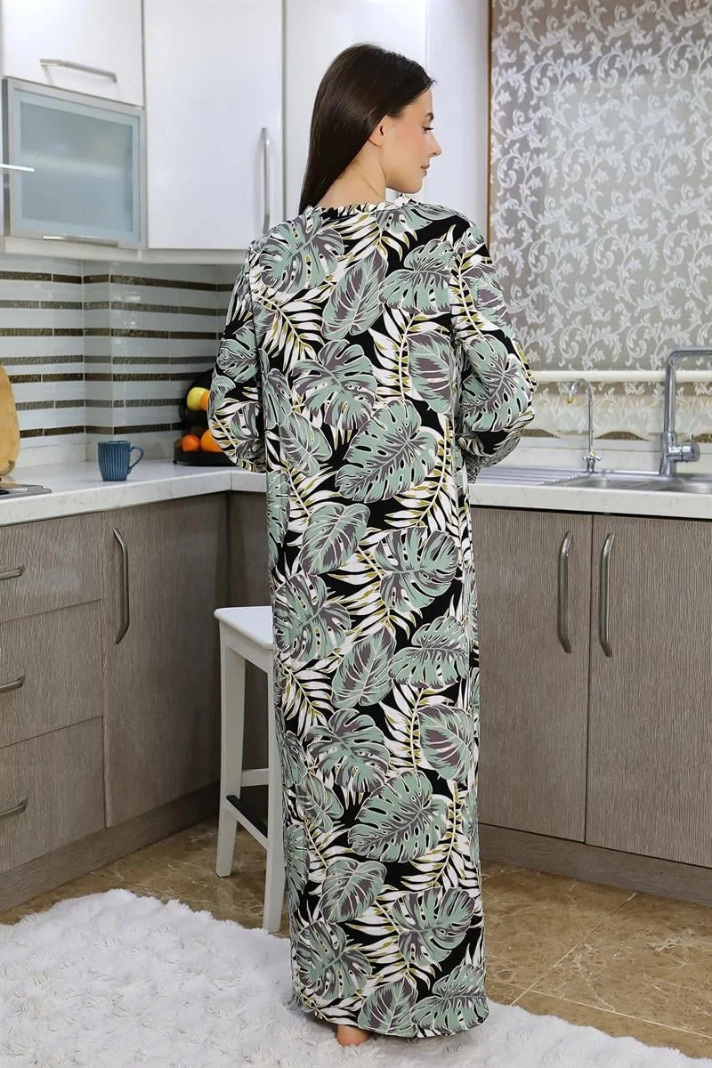 Çamaşır Kenti markasının şıklık ve rahatlığı bir araya getirdiği Kadın Uzun Kol Penye Gecelik Ev Elbisesi Suyeşili ile evinizde şıklığı hissedin.