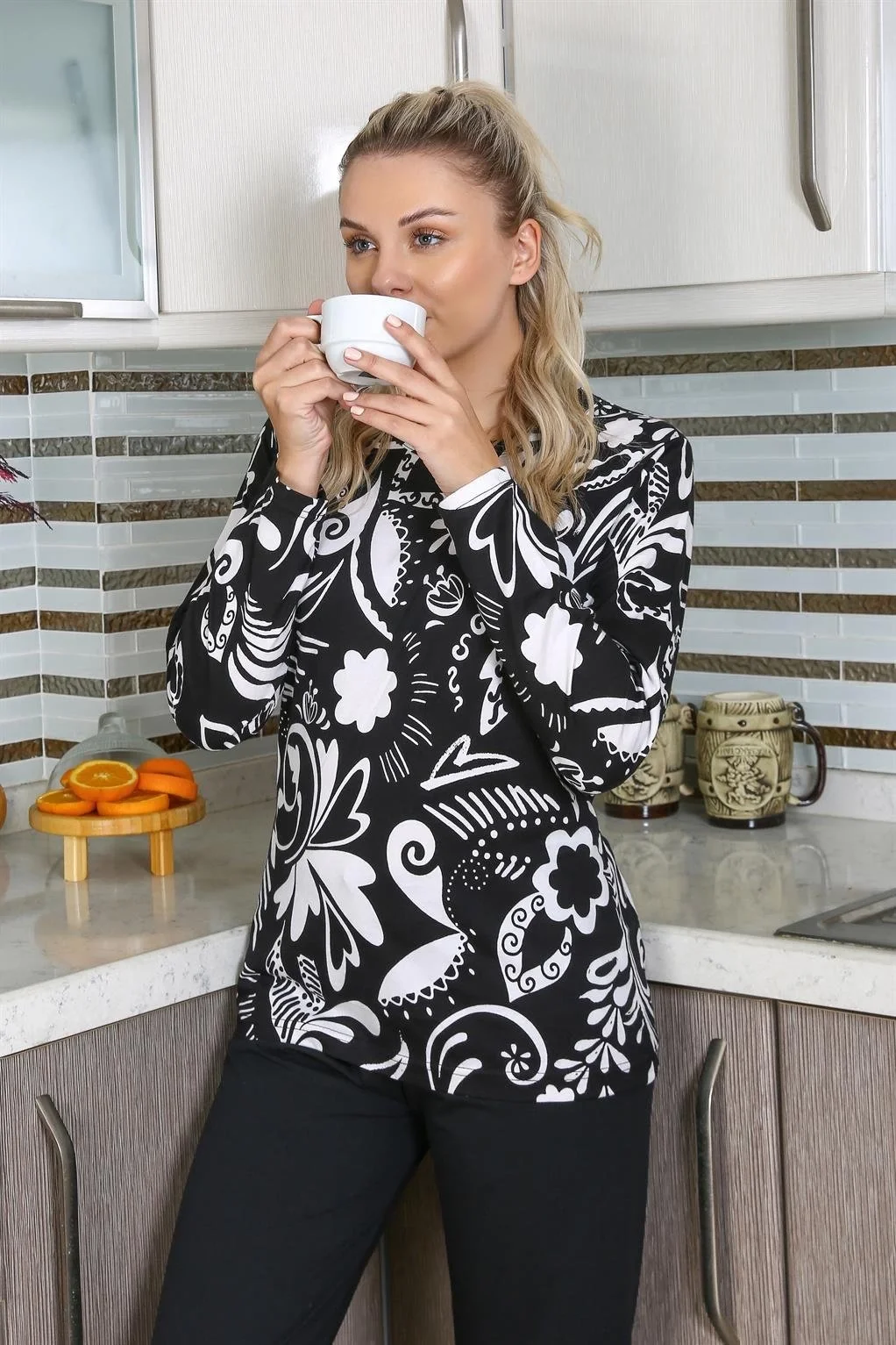 Kadın Uzun Kol Penye Pijama Takım Siyah, Çamaşır Kenti kalitesiyle şıklığı ve rahatlığı bir arada sunuyor.