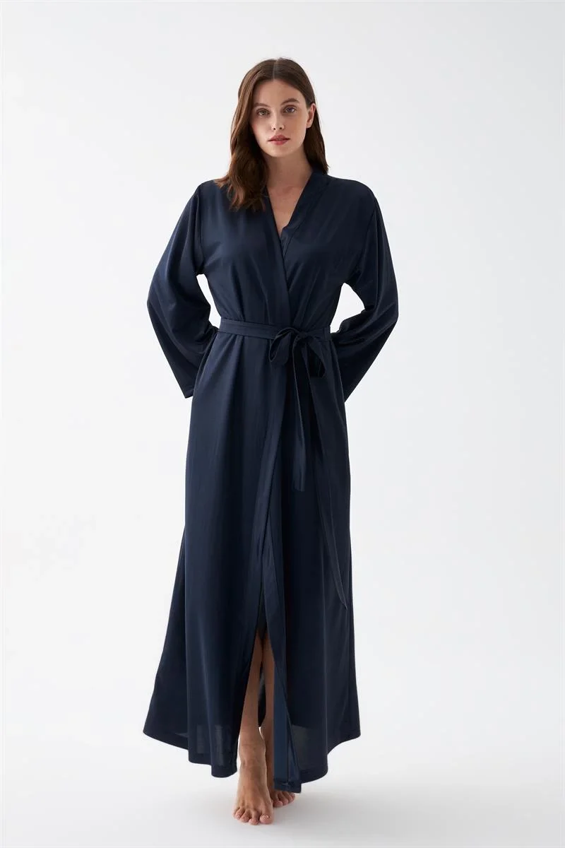 Çamaşır Kenti'nin şıklığı ve konforu bir arada sunan Kadın Uzun Lacivert Saten Sabahlık ile rahatlığın keyfini yaşayacaksınız.