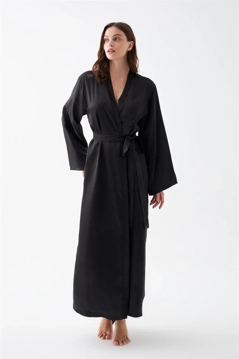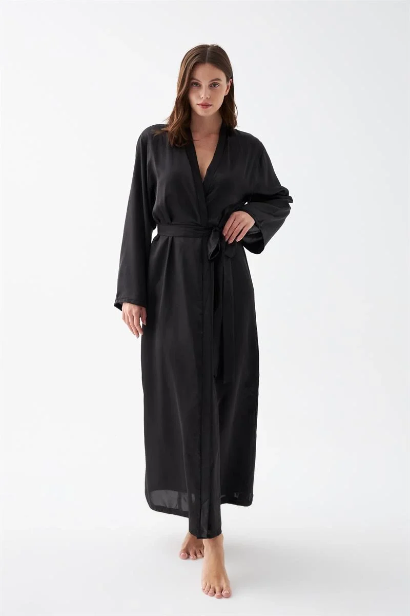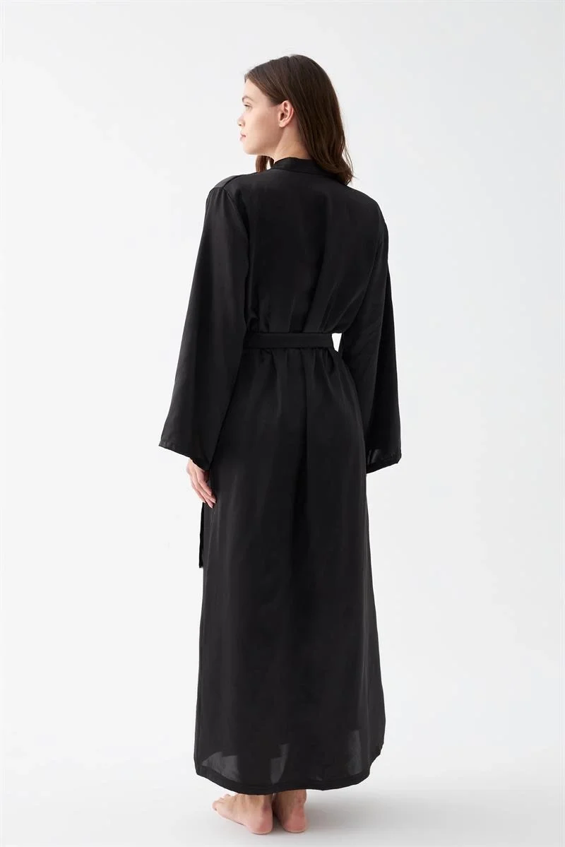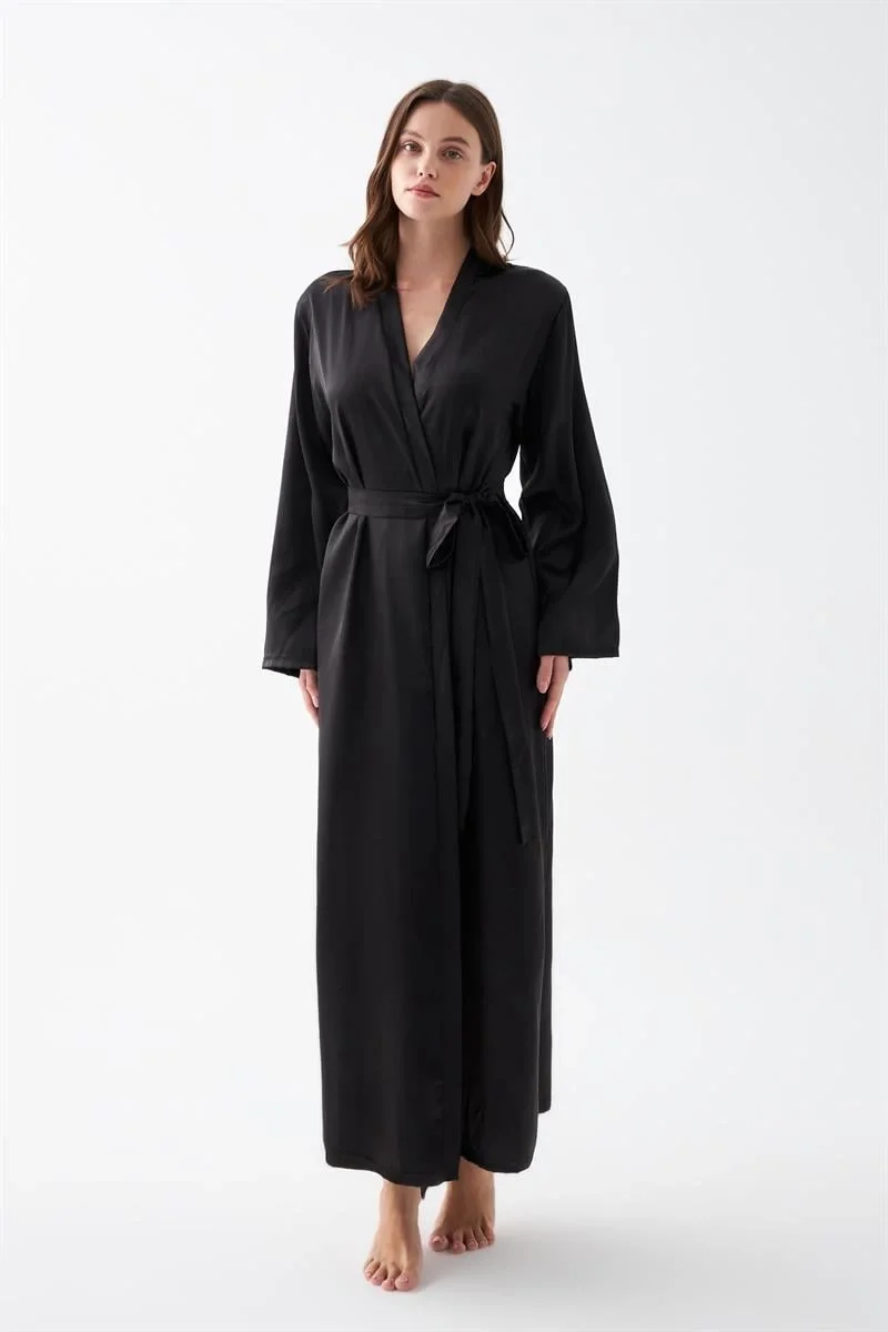 Kadın Uzun Siyah Saten Sabahlık ile her zaman şıklığı ve konforu bir arada hissedin. Sipariş verin, hemen teslim alın!