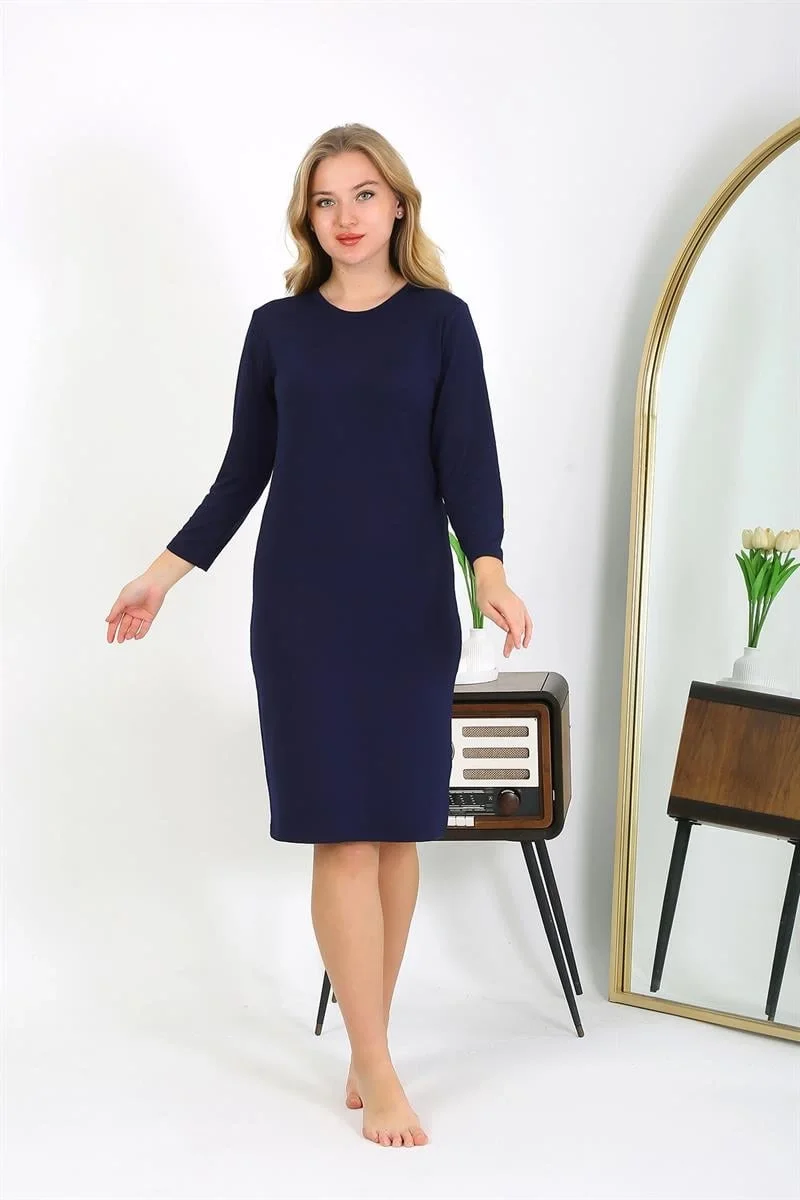 Çamaşır Kenti'nin şık ve rahat tasarımıyla öne çıkan Pamuk Ev Elbisesi Tunik Gecelik Lacivert, hem gecelerinizde hem de evde keyifli zamanlarınızda size eşlik edecek bir parça.